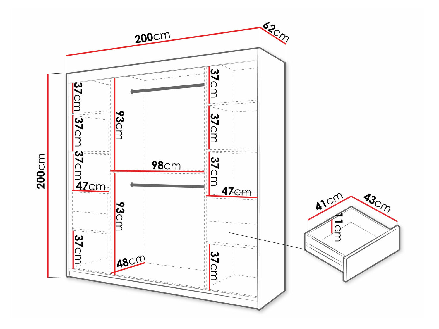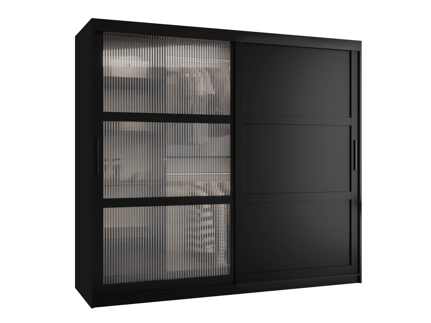 Gardróbszekrény Szafa FLUTES 3, Szín: Fekete, Fiókok: Igen, Szélesség: 200 cm, Led világítás: Nem