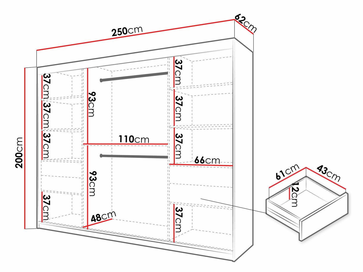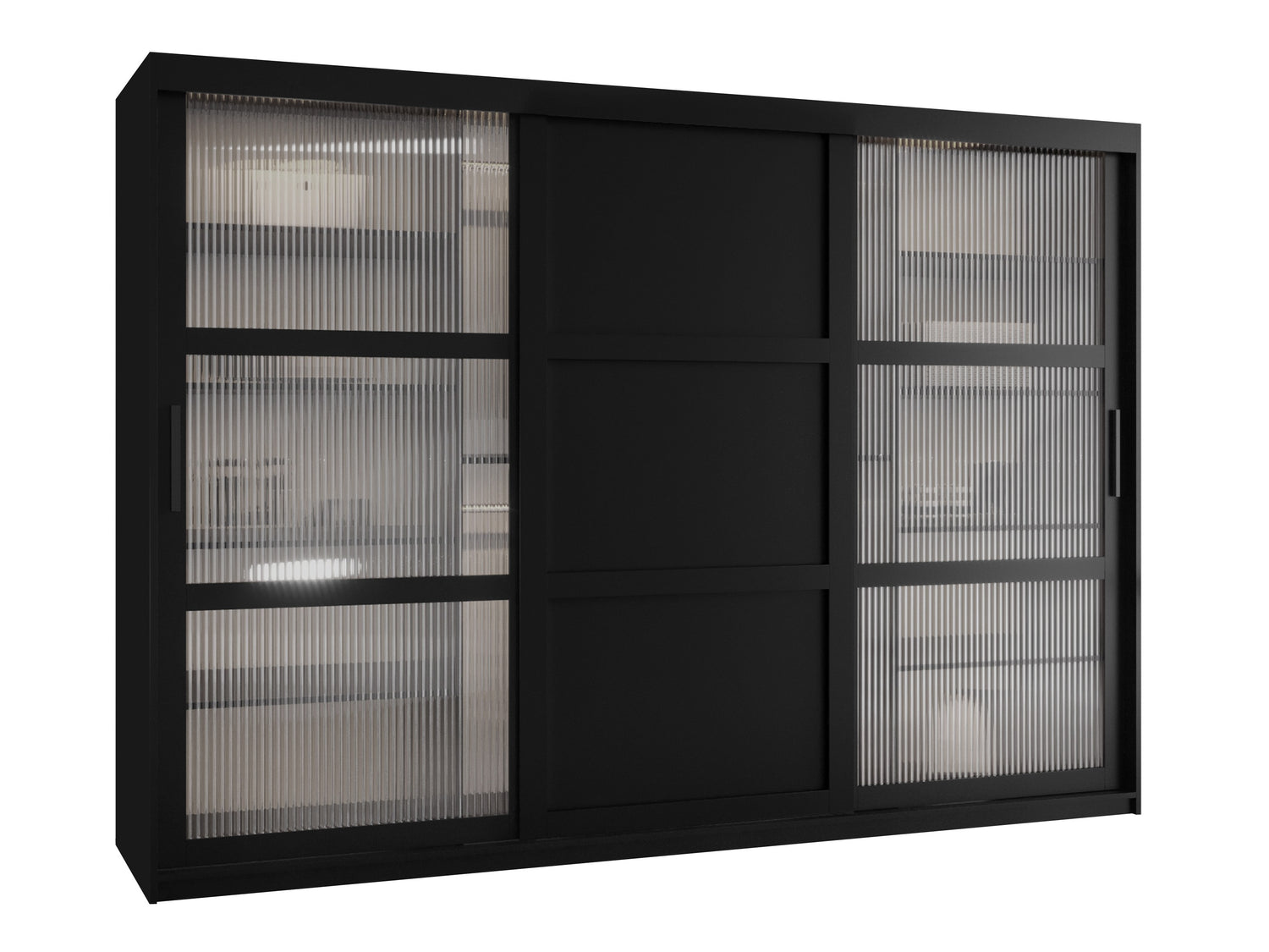 Gardróbszekrény Szafa FLUTES 3, Szín: Fekete, Fiókok: Igen, Szélesség: 250 cm, Led világítás: Nem