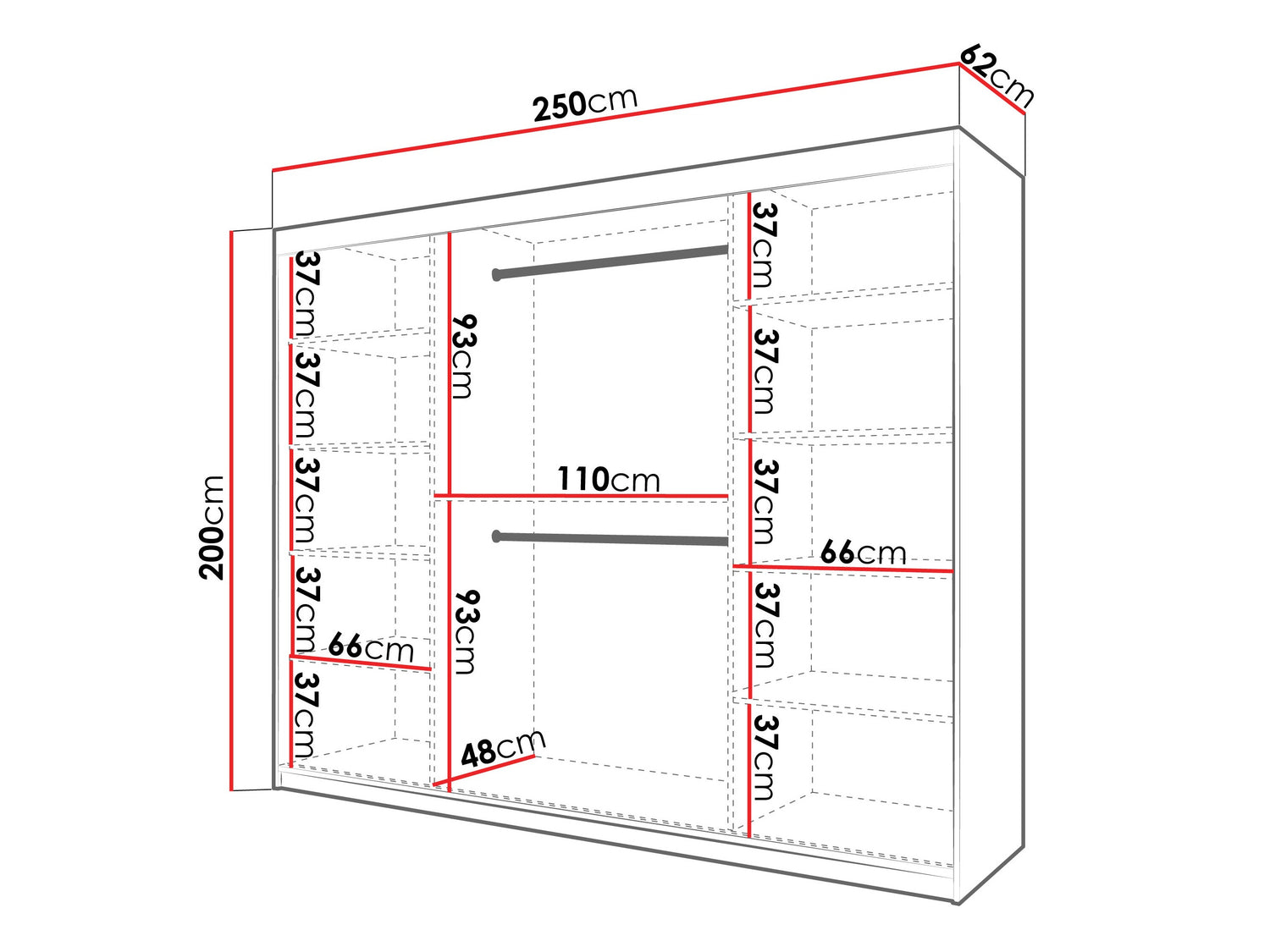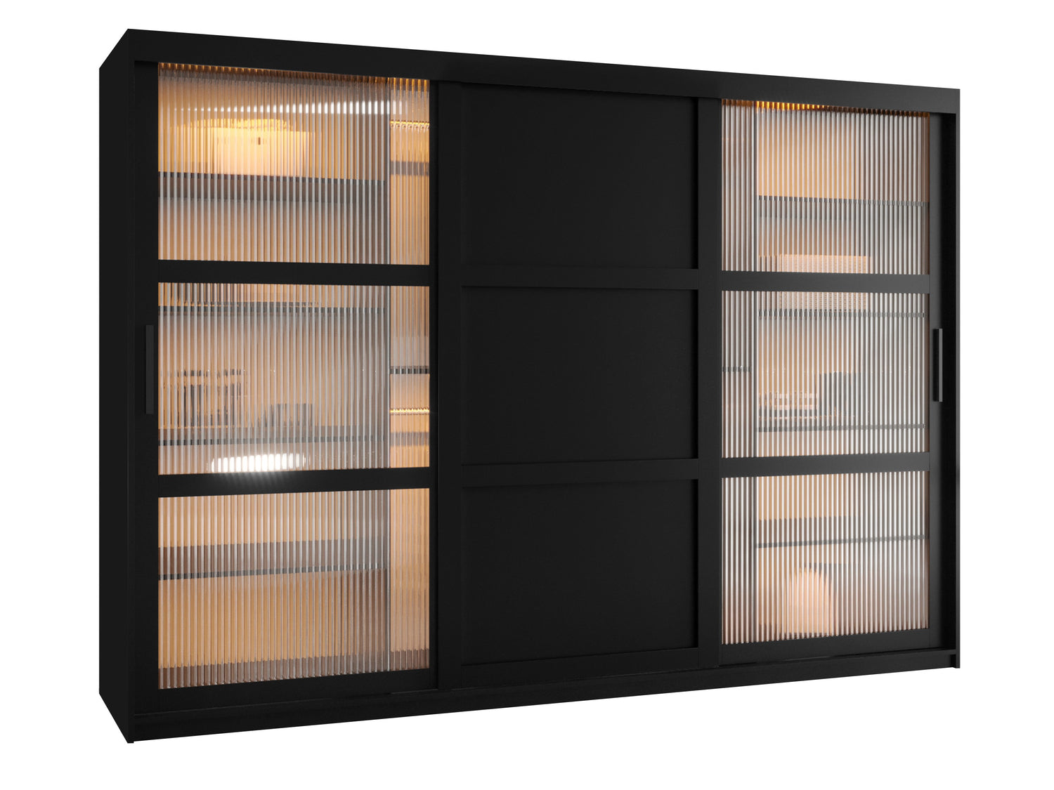 Gardróbszekrény Szafa FLUTES 3, Szín: Fekete, Fiókok: Nem, Szélesség: 250 cm, Led világítás: Igen