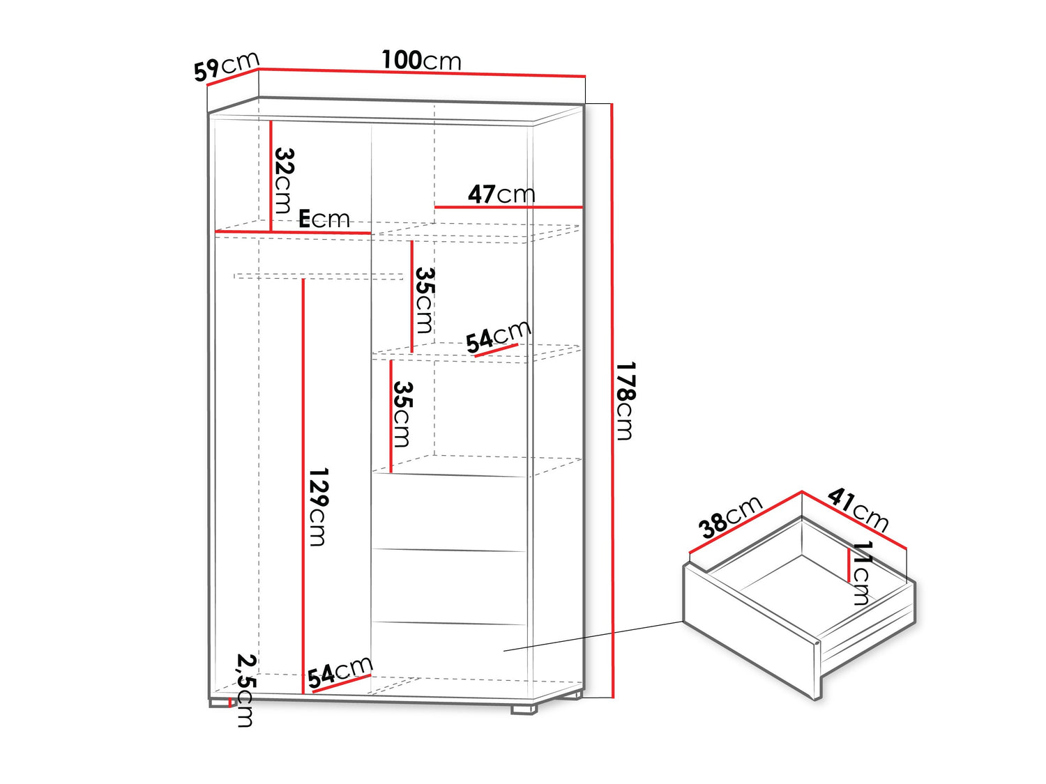 Gardróbszekrény Szafa GESITA 2D3SZ, Szín: Kasmír