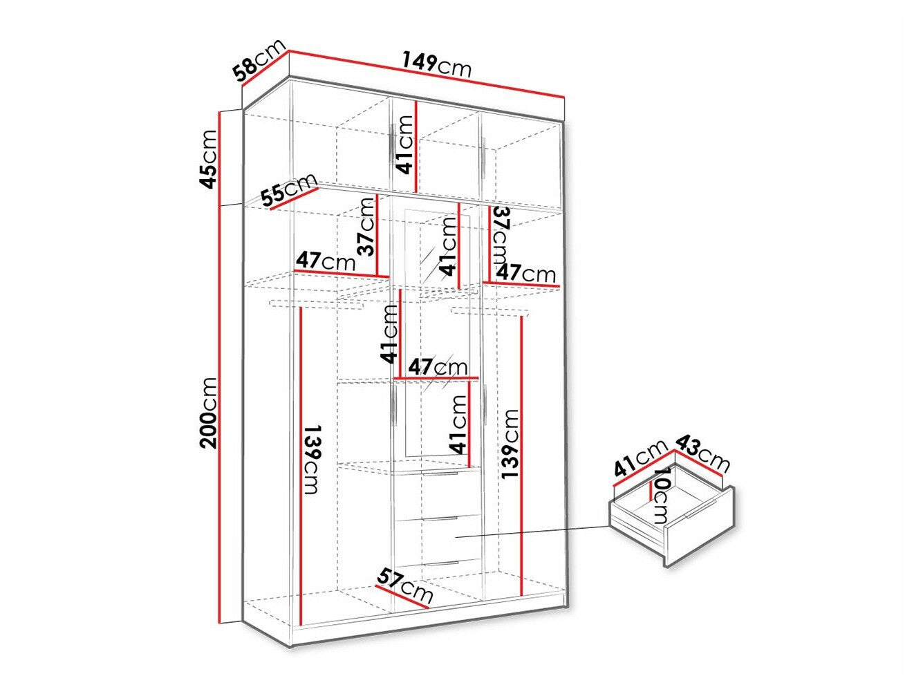 Gardróbszekrény Szafa LATI D3 + nadstawka Czarny/Dąb Viking/Lustro