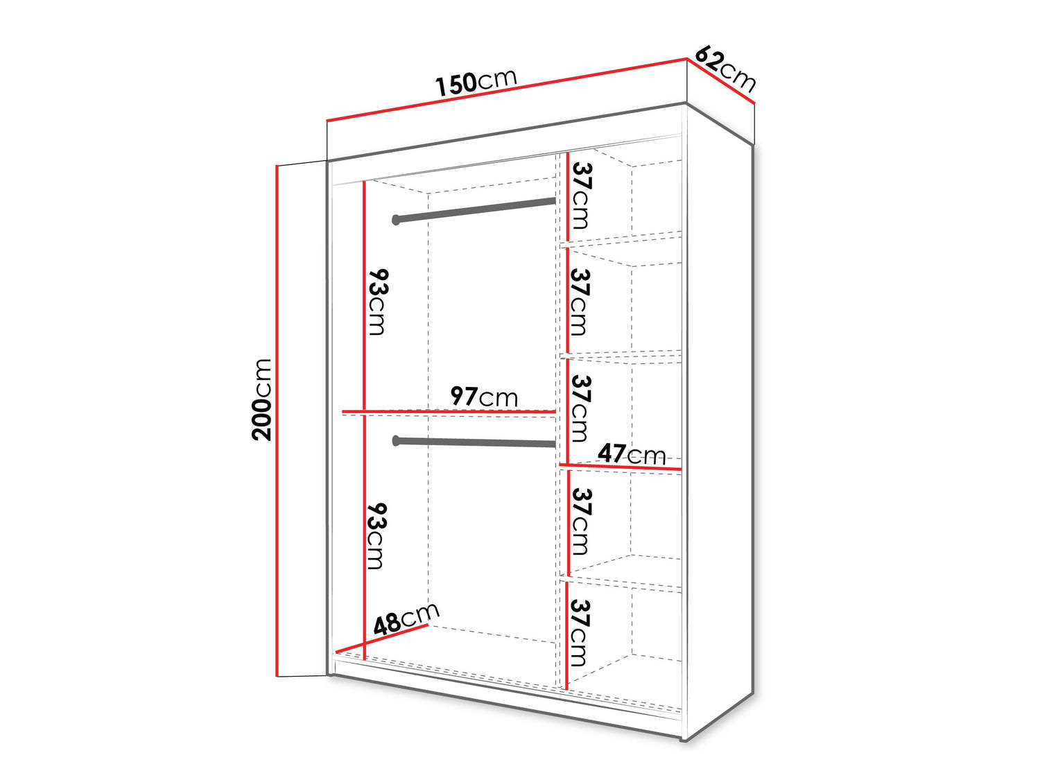 Gardróbszekrény Szafa SPOTI, Szín: Fehér, Fiókok: Nem, Szélesség: 150 cm