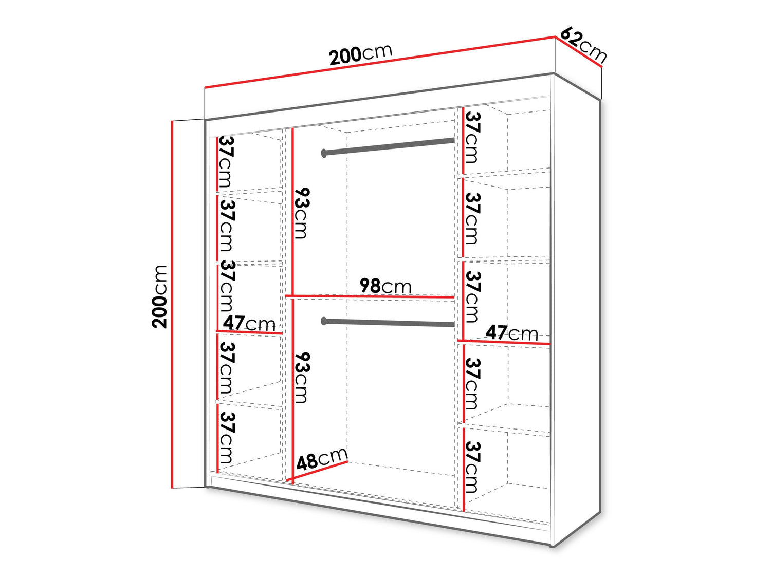 Gardróbszekrény Szafa SPOTI, Szín: Fehér, Fiókok: Nem, Szélesség: 200 cm