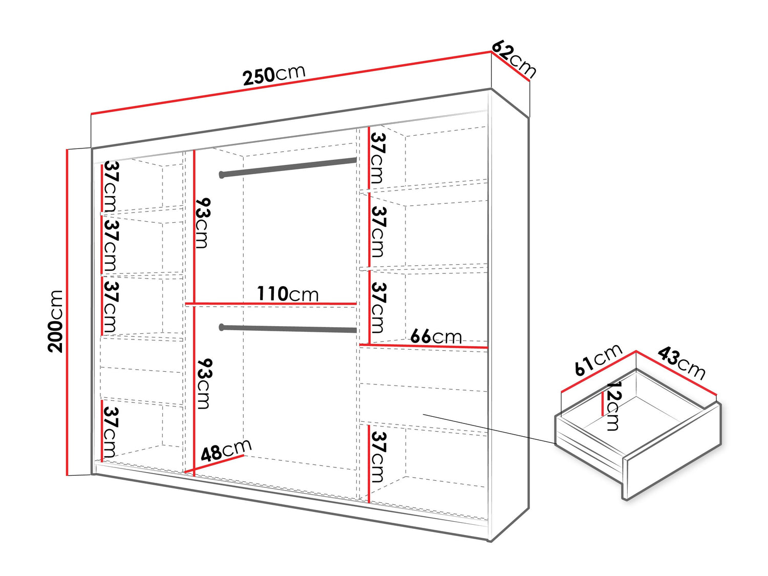 Gardróbszekrény Szafa SPOTI, Szín: Fekete, Fiókok: Igen, Szélesség: 250 cm
