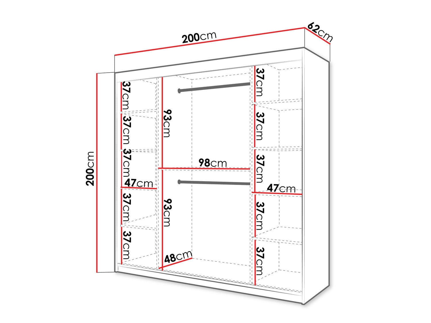 Gardróbszekrény Szafa SPOTI, Szín: Fekete, Fiókok: Nem, Szélesség: 200 cm