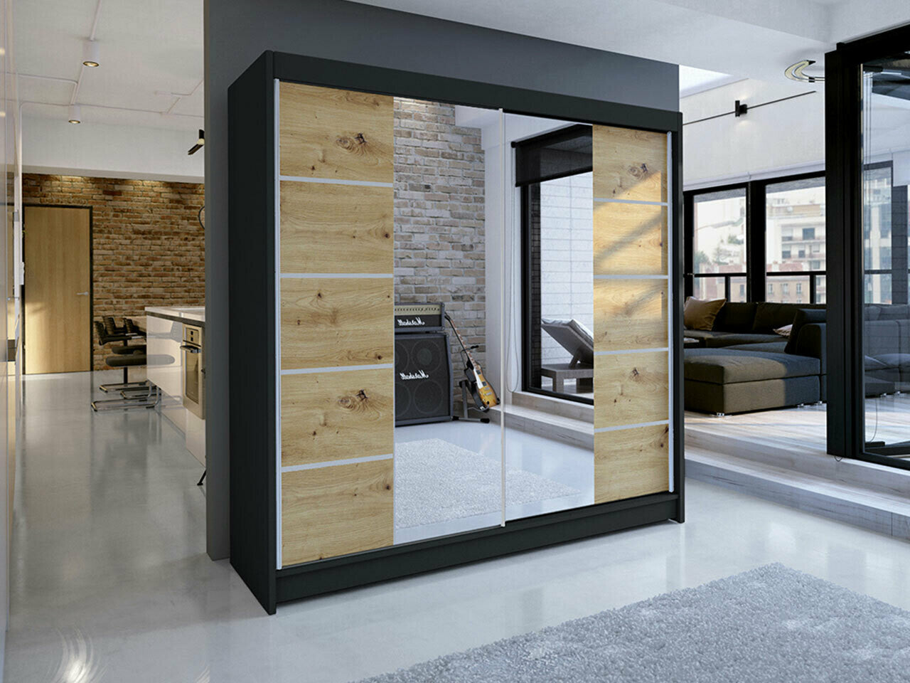 Gardróbszekrény Talin V (Bárasztalr V), Szín: Fekete + Artisan tölgy, Led világítás: Nem