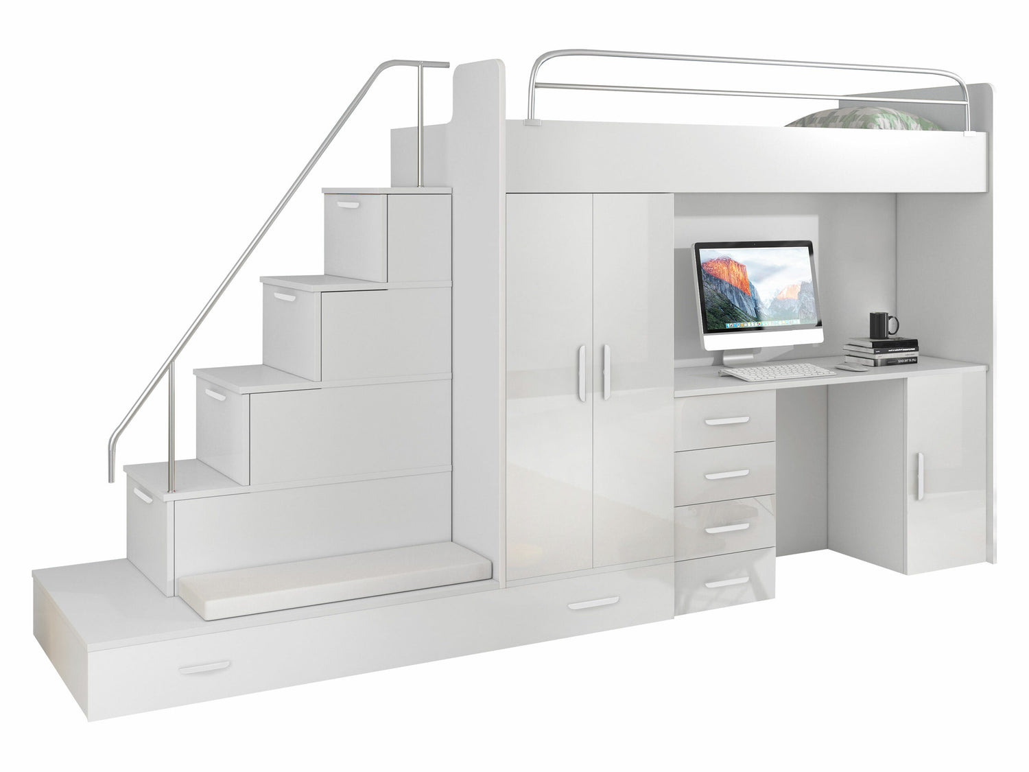 Gyerekszoba garnitúra RAJ 5 (Paradise V), Szín: Fehér + Fényes fehér