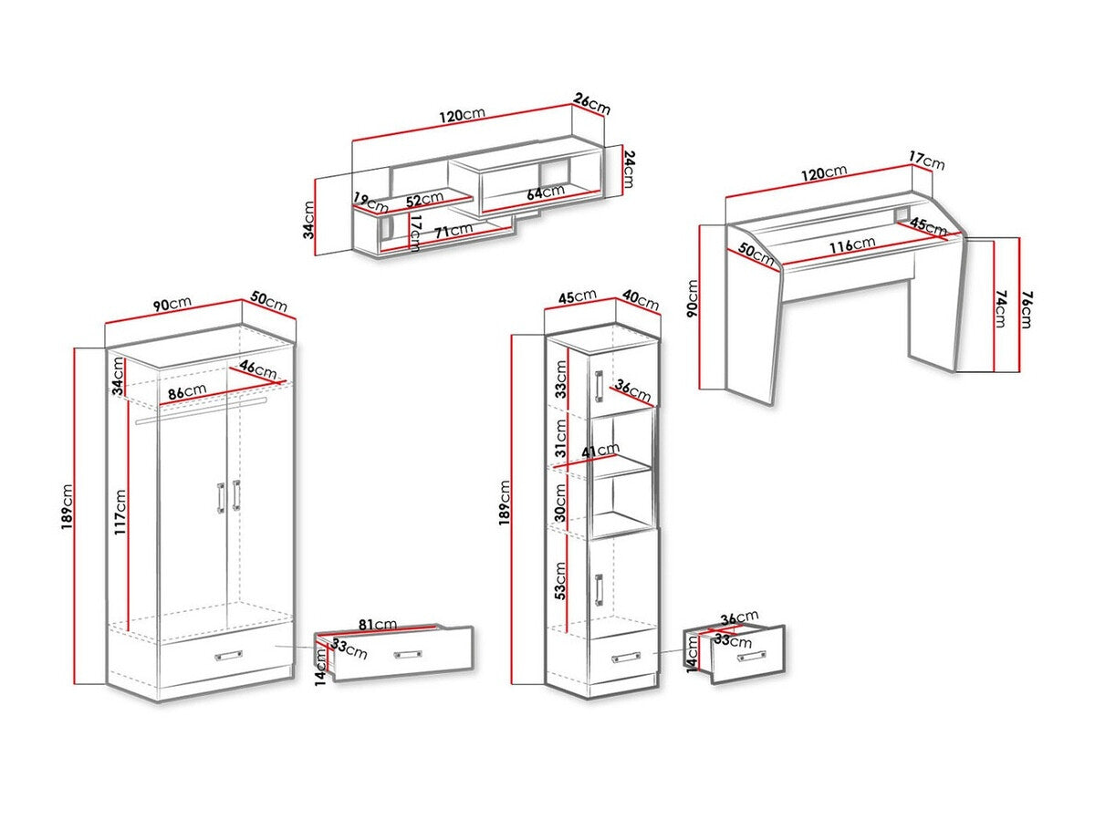 Gyerekszoba garnitúra Trafiko I (Tofiko I), Szín: Fehér + Rózsaszín