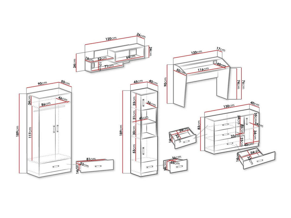 Gyerekszoba garnitúra Trafiko IV (Tofiko IV), Szín: Fehér + Rózsaszín