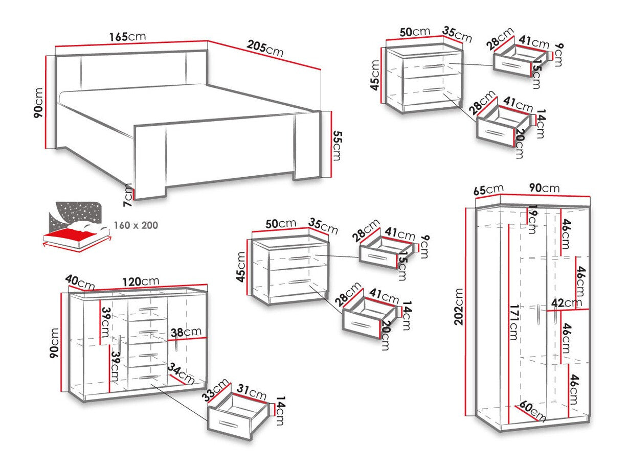 Ágykeret méretei90 x 165 x 205 cm