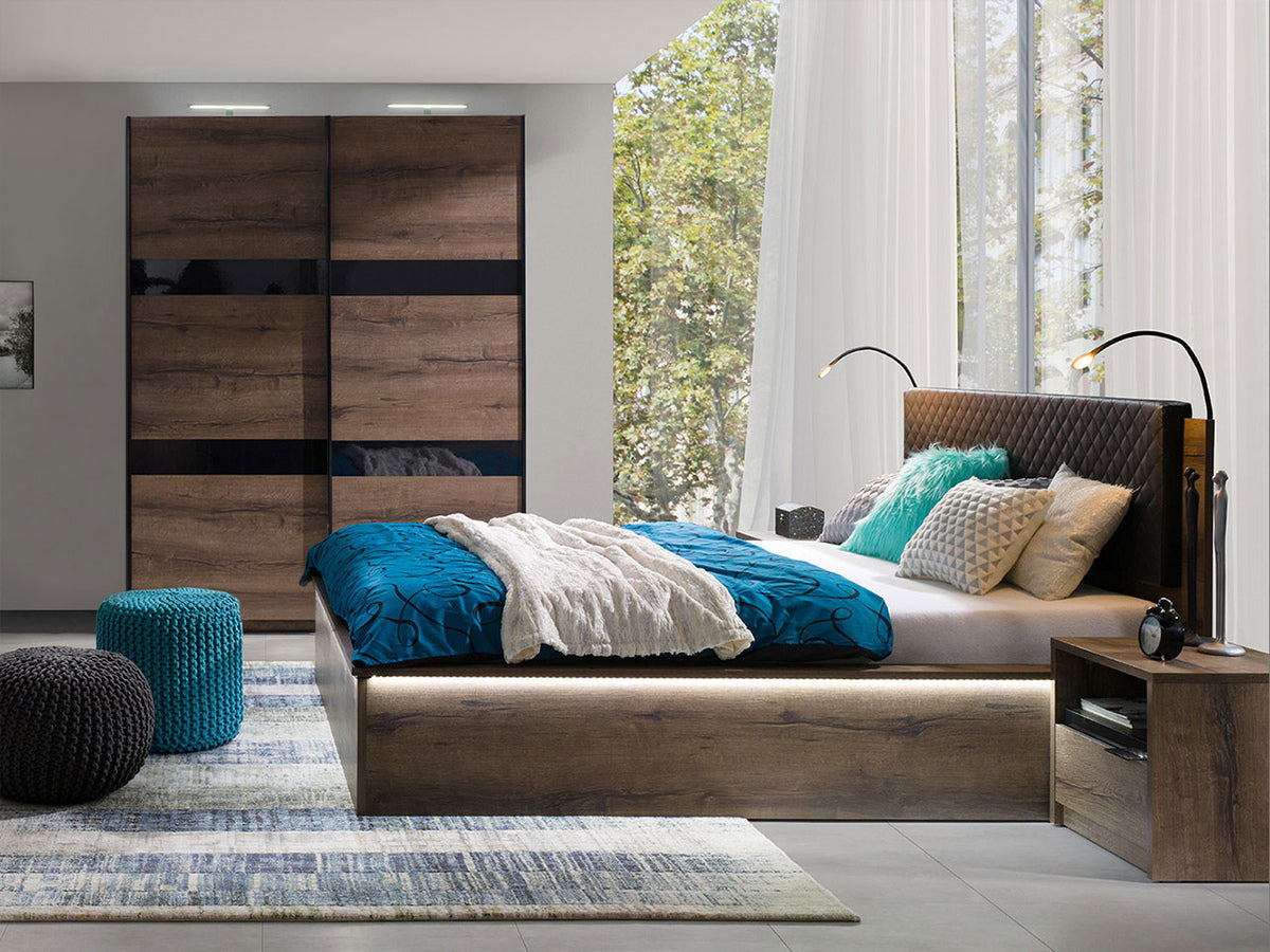 Hálószoba garnitúra Denver (Verdek VI), Fék: Nem, Led világítás: Igen, Szín: Monastery tölgy + Fényes fekete