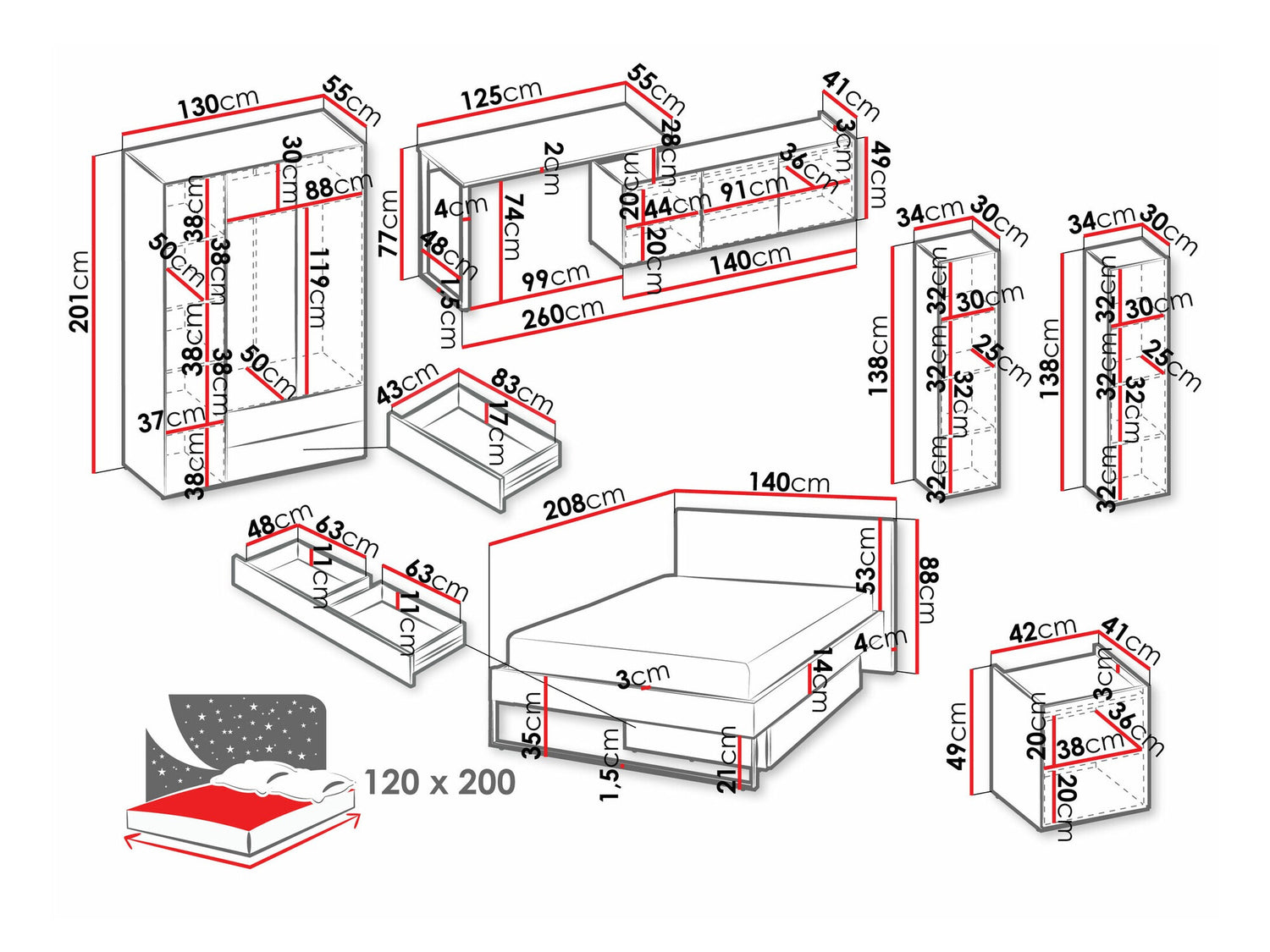 Hálószoba garnitúra Meble SIGMA I, Alvó felület mérete: 120 x 200 cm