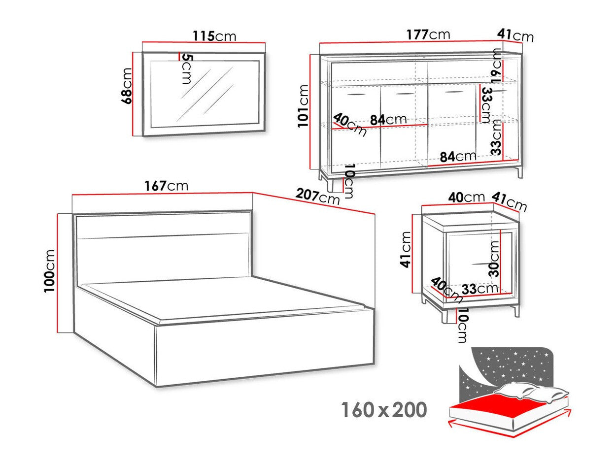 Hálószoba garnitúra MEDIOLAN I (Sarged I), Szín: Világos fa + Tölgy, Led világítás: Nem, Lábak: Igen
