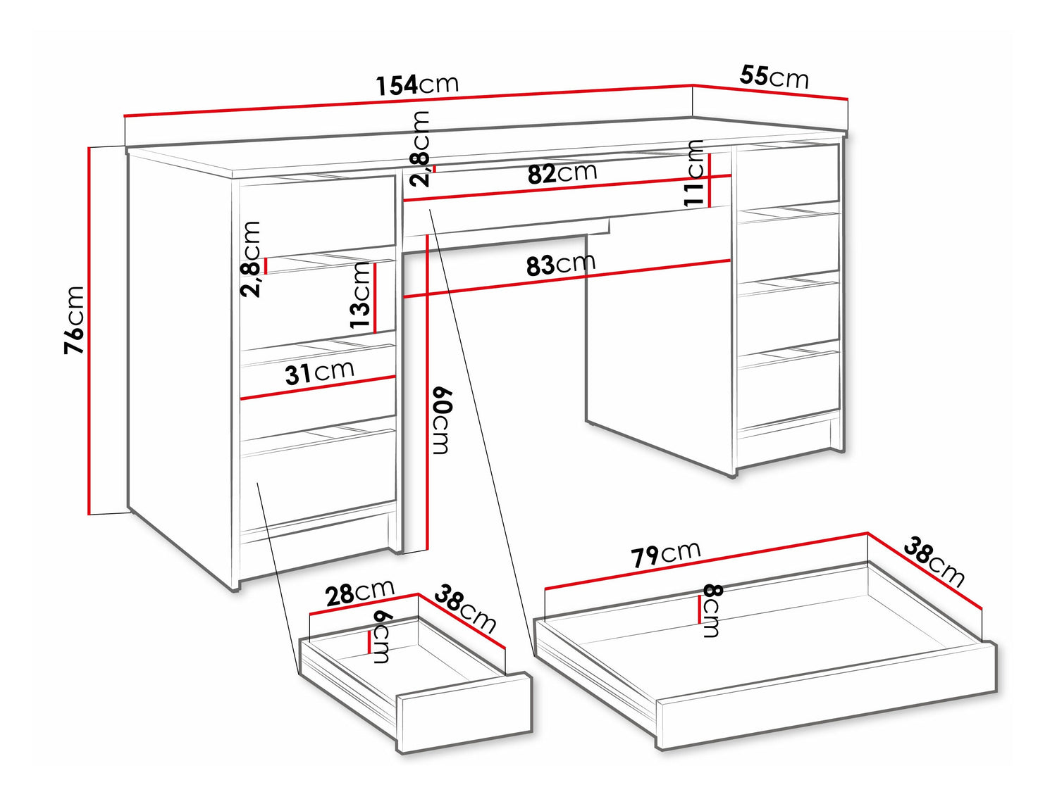 Íróasztal típusaFiókokkal