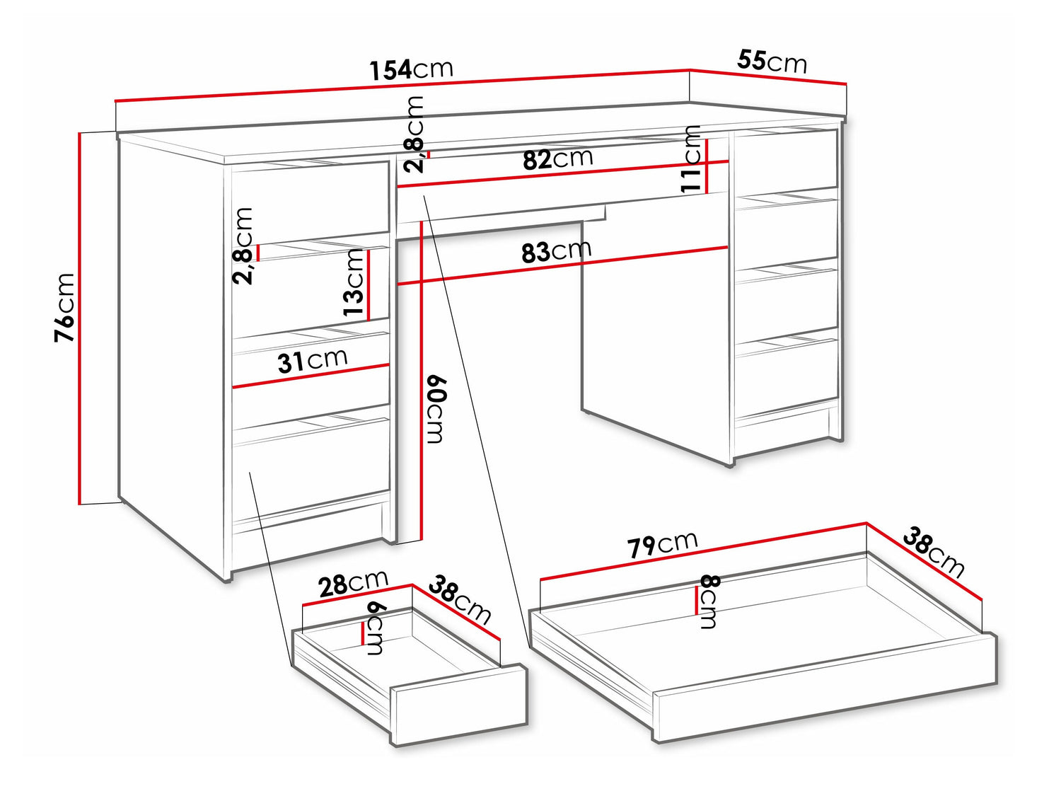 Íróasztal típusaFiókokkal