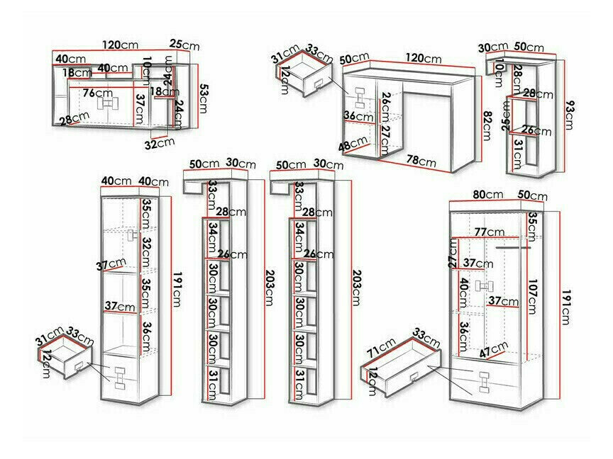 Polcos szekrény191 x 40 x 40 x 50 x 30 cm
