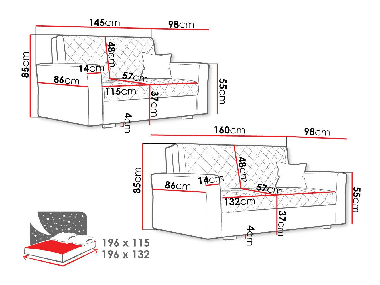 Dupla kanapé méretei85 x 160 x 98 cm
