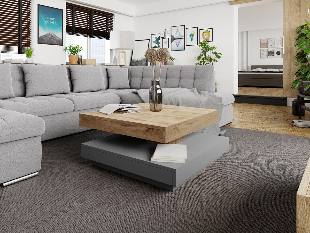 Kihajtható dohányzóasztal Nenani (Druzjan), Szín: Grafit + Wotan tölgy