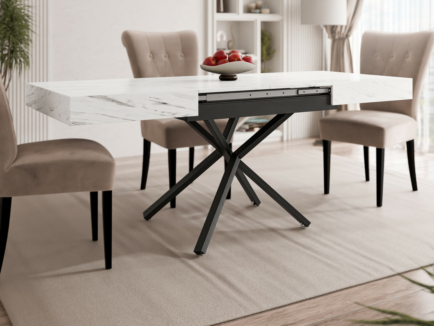 Kihajtható dohányzóasztal SANNA X, színe: Fehér márvány