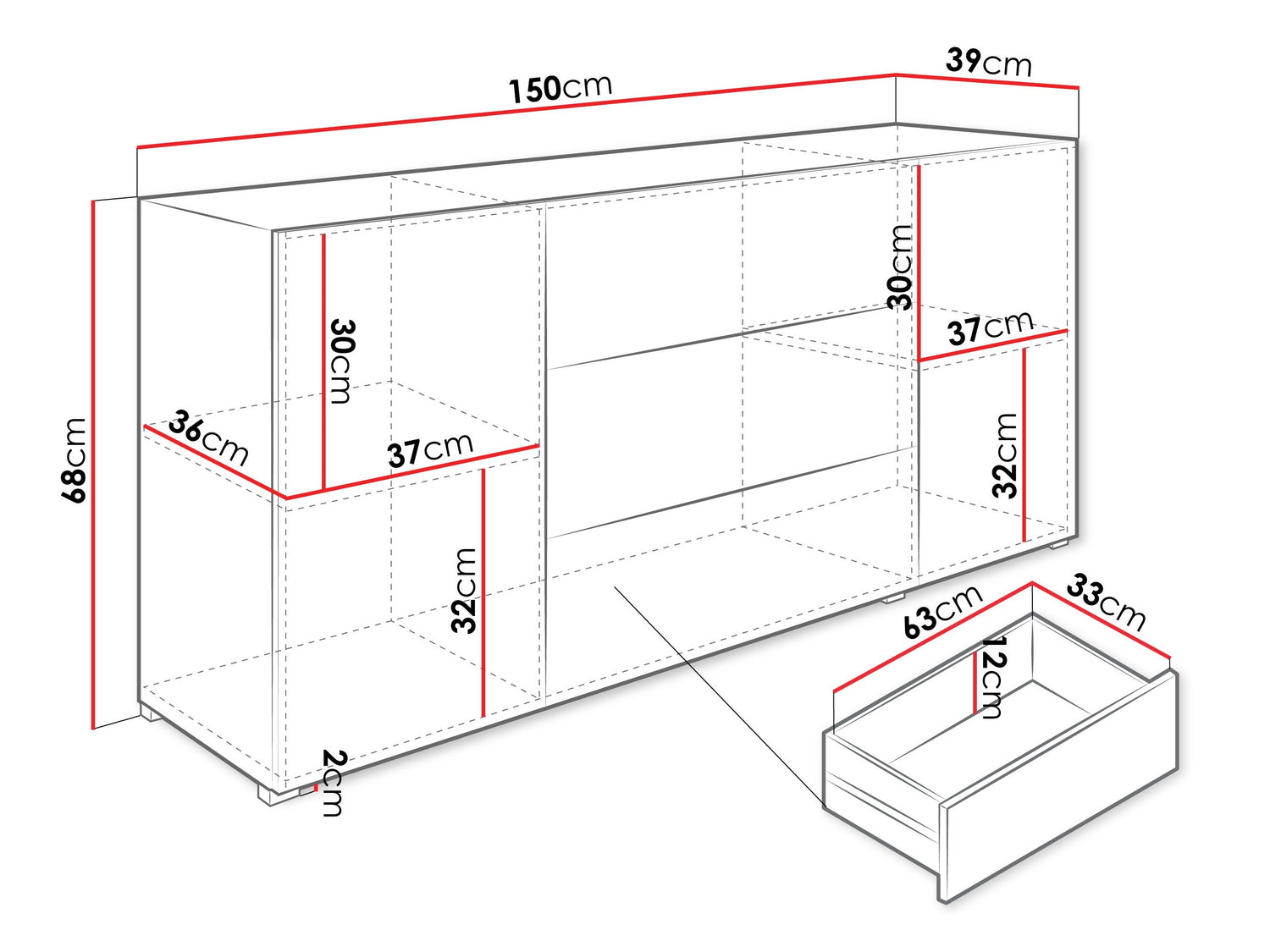 Komód BERLIN 150, Szín: Fehér + Wotan tölgy