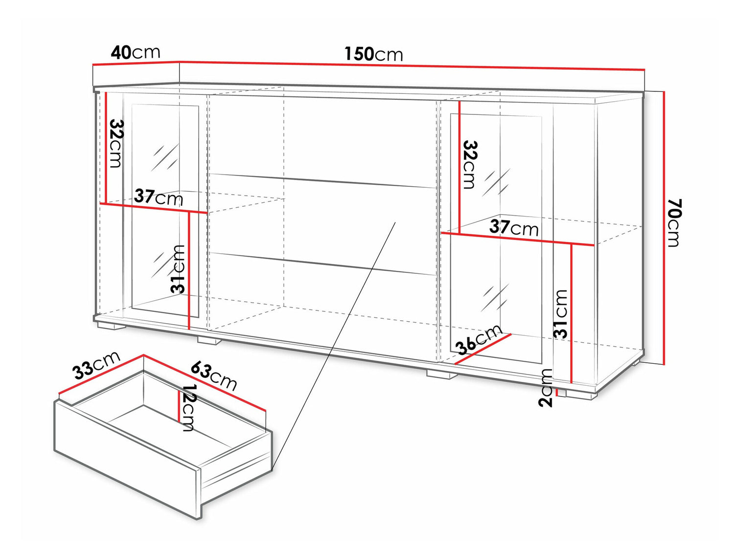 Komód CARO SB 150, Szín: Fekete, Led világítás: Nem