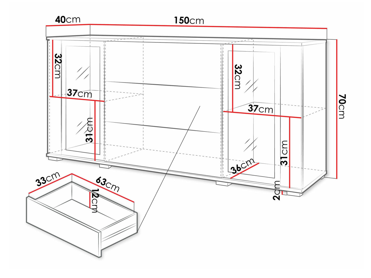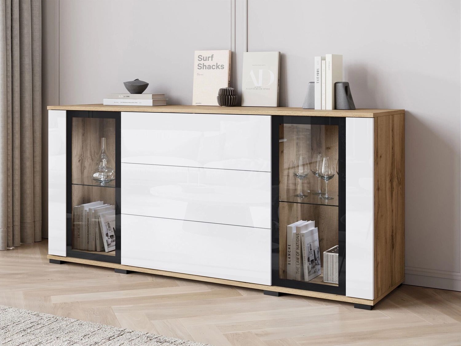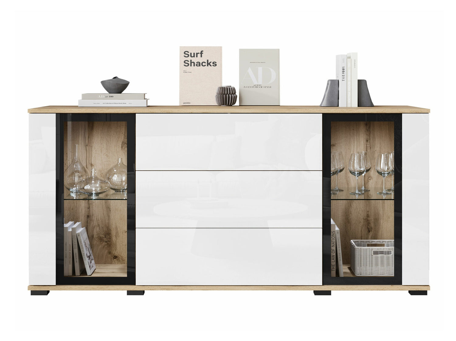 Komód CARO SB 150, Szín: Wotan tölgy + Fényes fehér, Led világítás: Igen