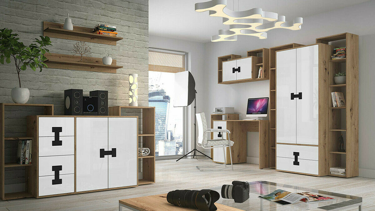 Komód INDEX 08 (Tikrote), Szín: Fényes fehér + Artisan tölgy