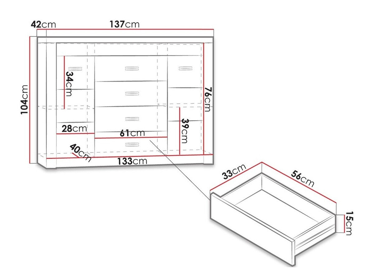 Komód Indianapolis (Nadia N07), Szín: Kőrisfa, Led világítás: Igen