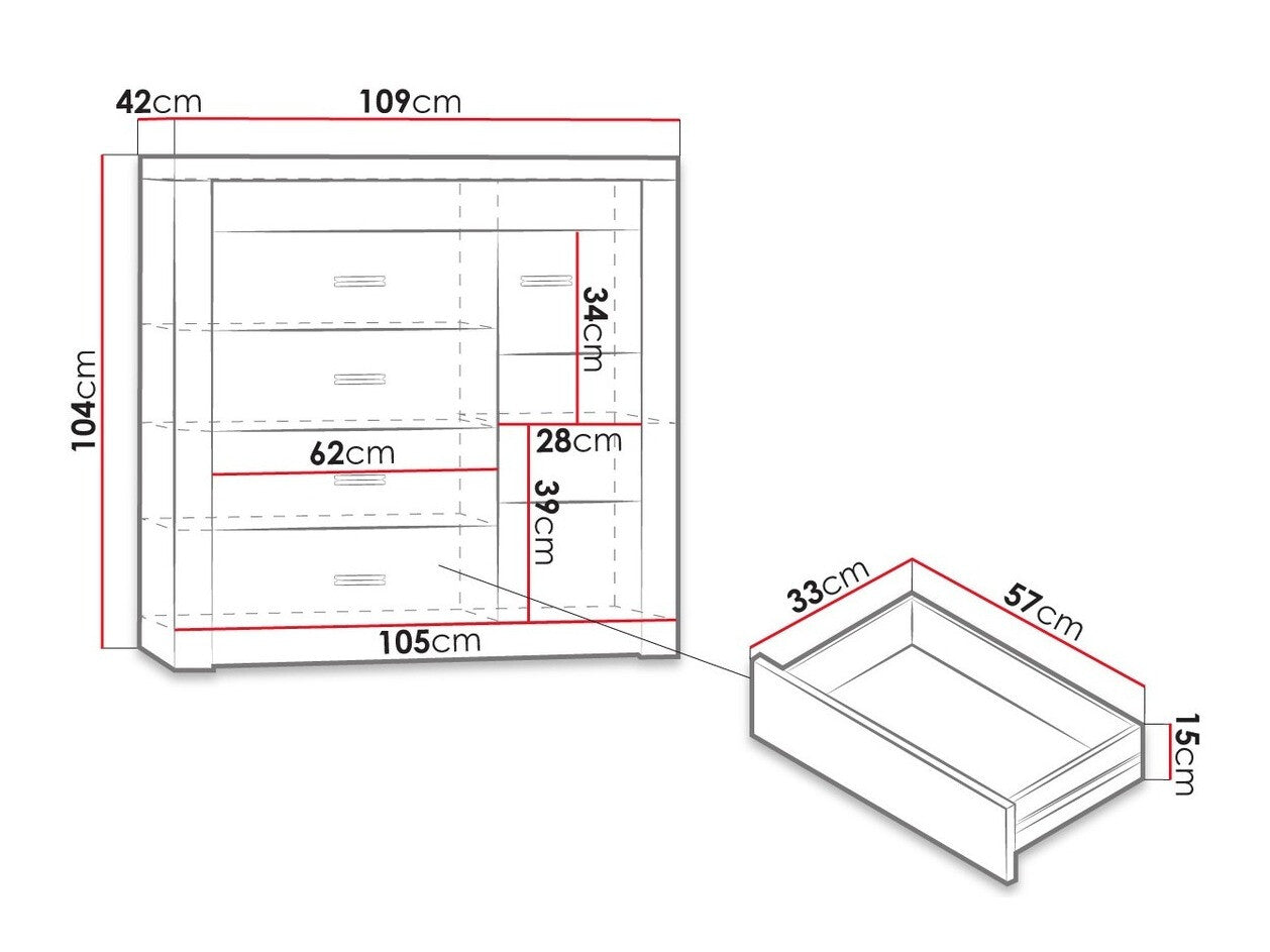 Komód Indianapolis (Nadia N17), Szín: Sötét kőris, Led világítás: Nem