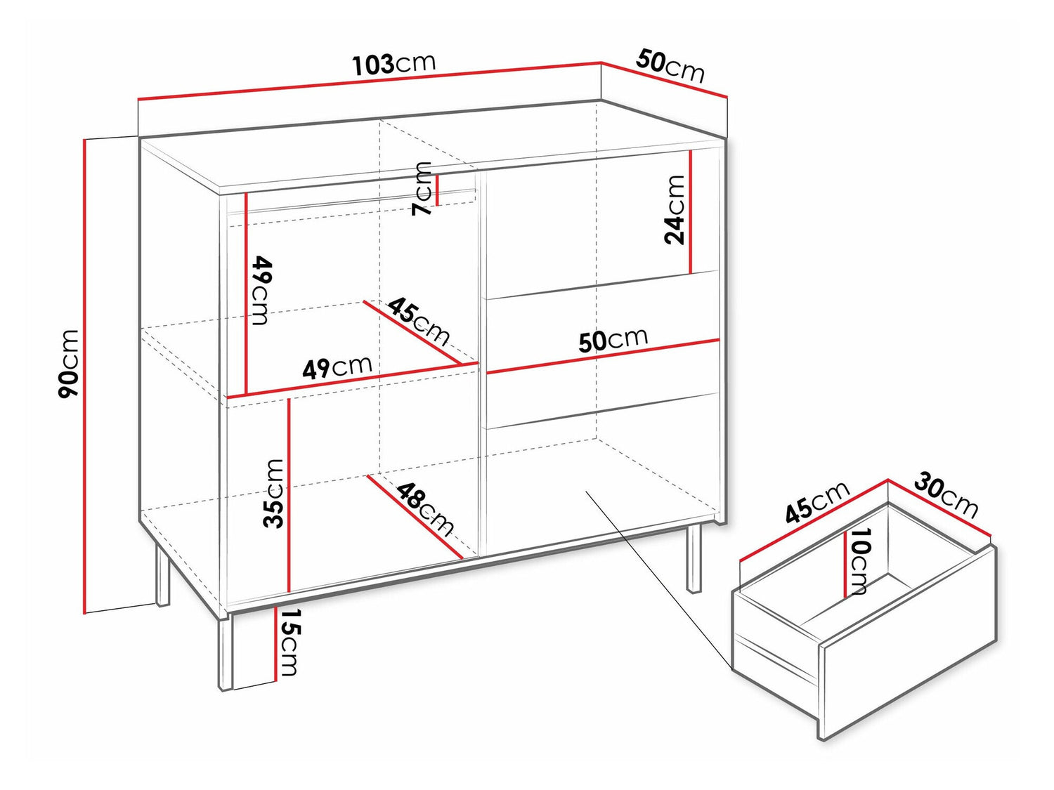 Komód Komoda 1D3SZ OZMI, Szín: Fehér