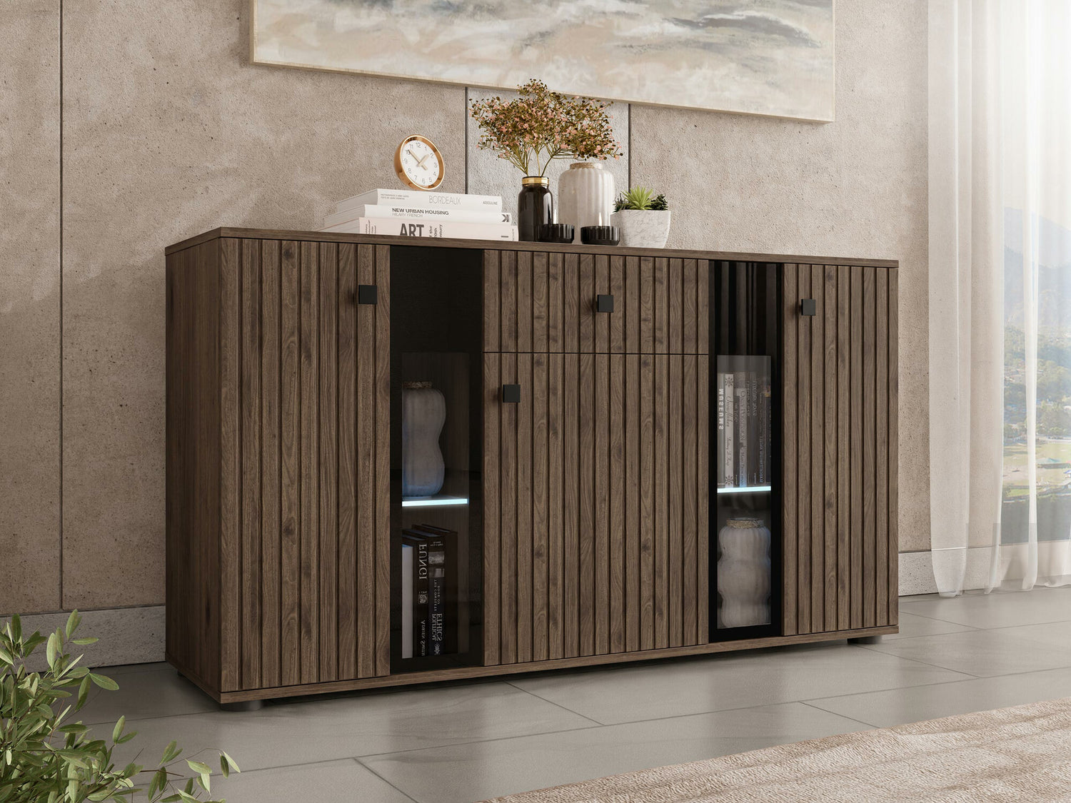 Komód Komoda SALSA Közepes sűrűségű farostlemez LAMELE Orzech Okapi, Led világítás: Igen