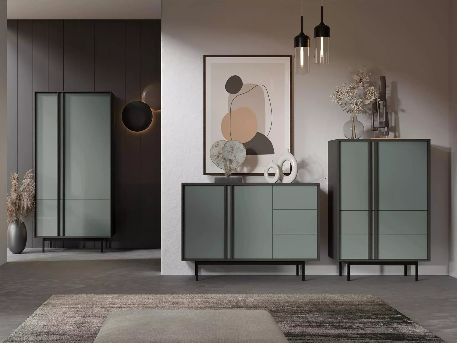 Komód Regał mały 2S2D ALSY REG 5 Antracyt/Aloes (Poros zöld)