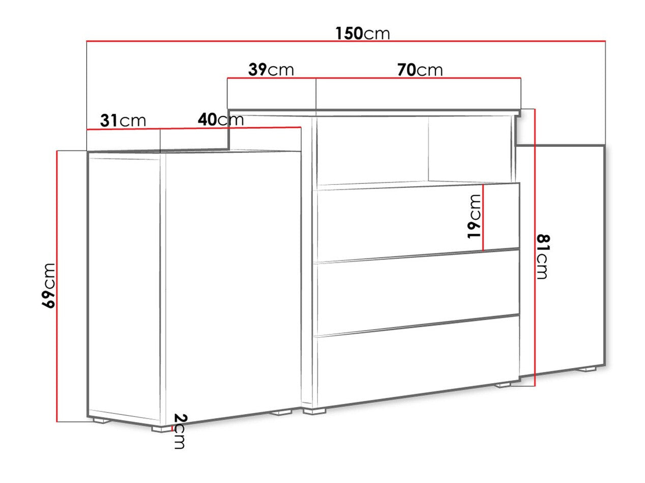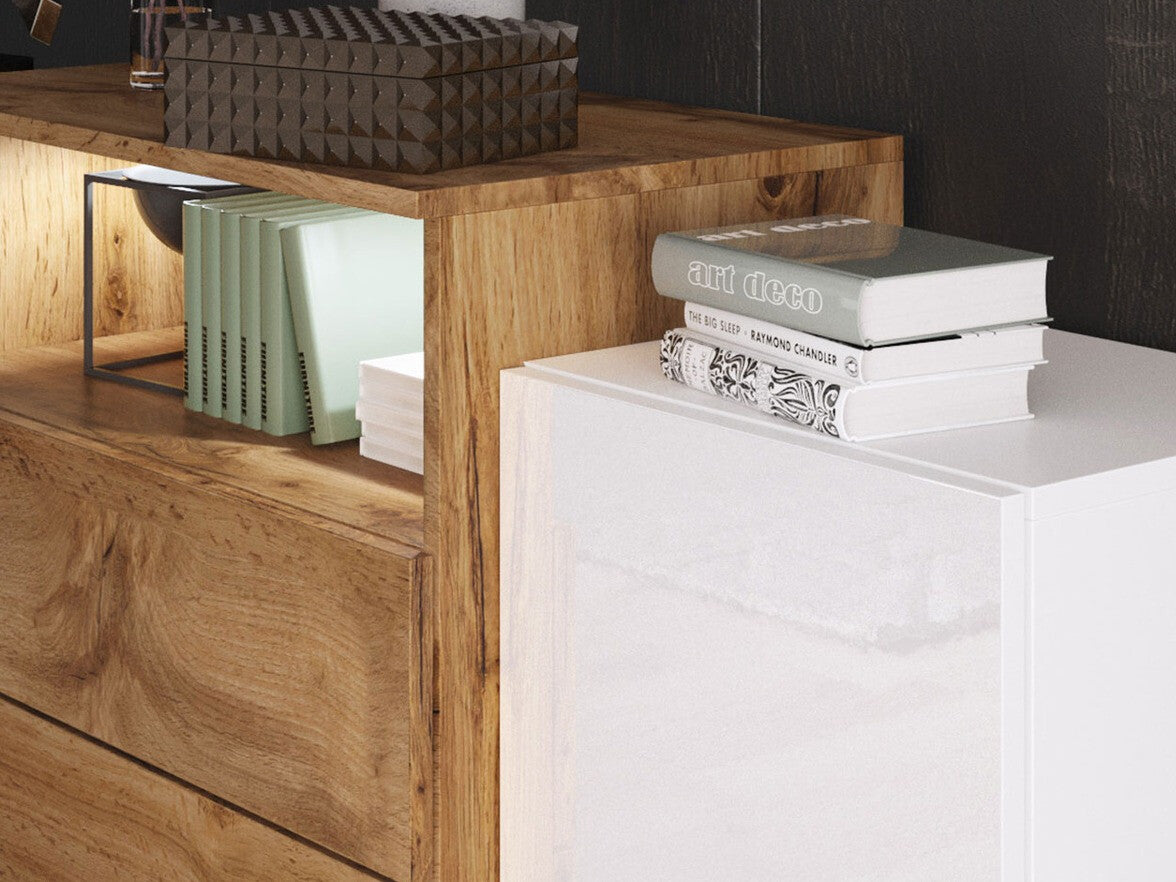 Komód URBAN URBIII1500 (Layla III), Szín: Wotan tölgy + Fényes fehér, Led világítás: Igen