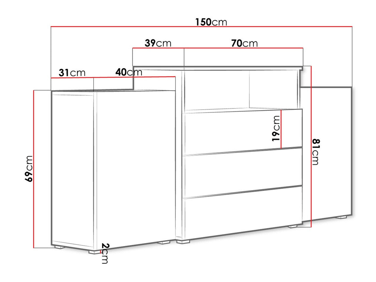 Komód URBAN URBIII1500 (Layla III), Szín: Wotan tölgy, Led világítás: Nem