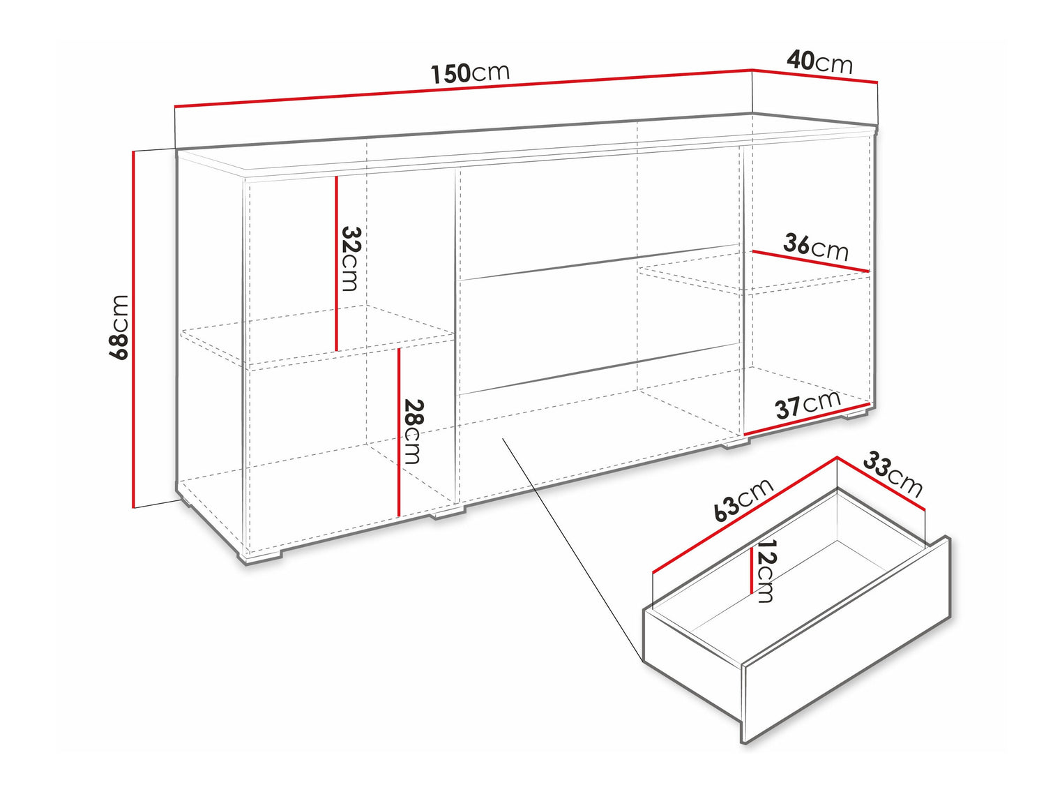 Komód VERA 150 (Sawoti), Szín: Grafit, Led világítás: Igen fehér