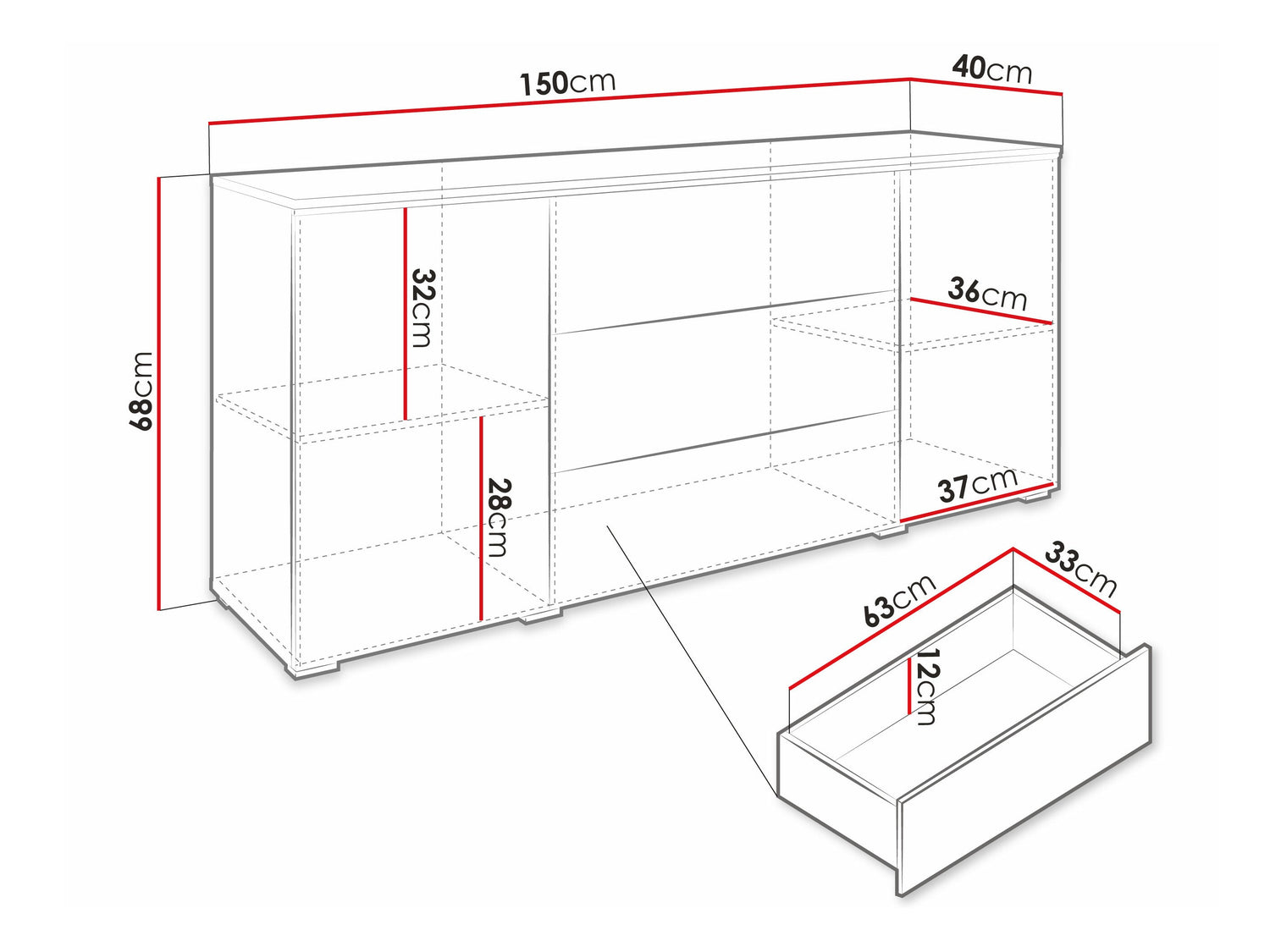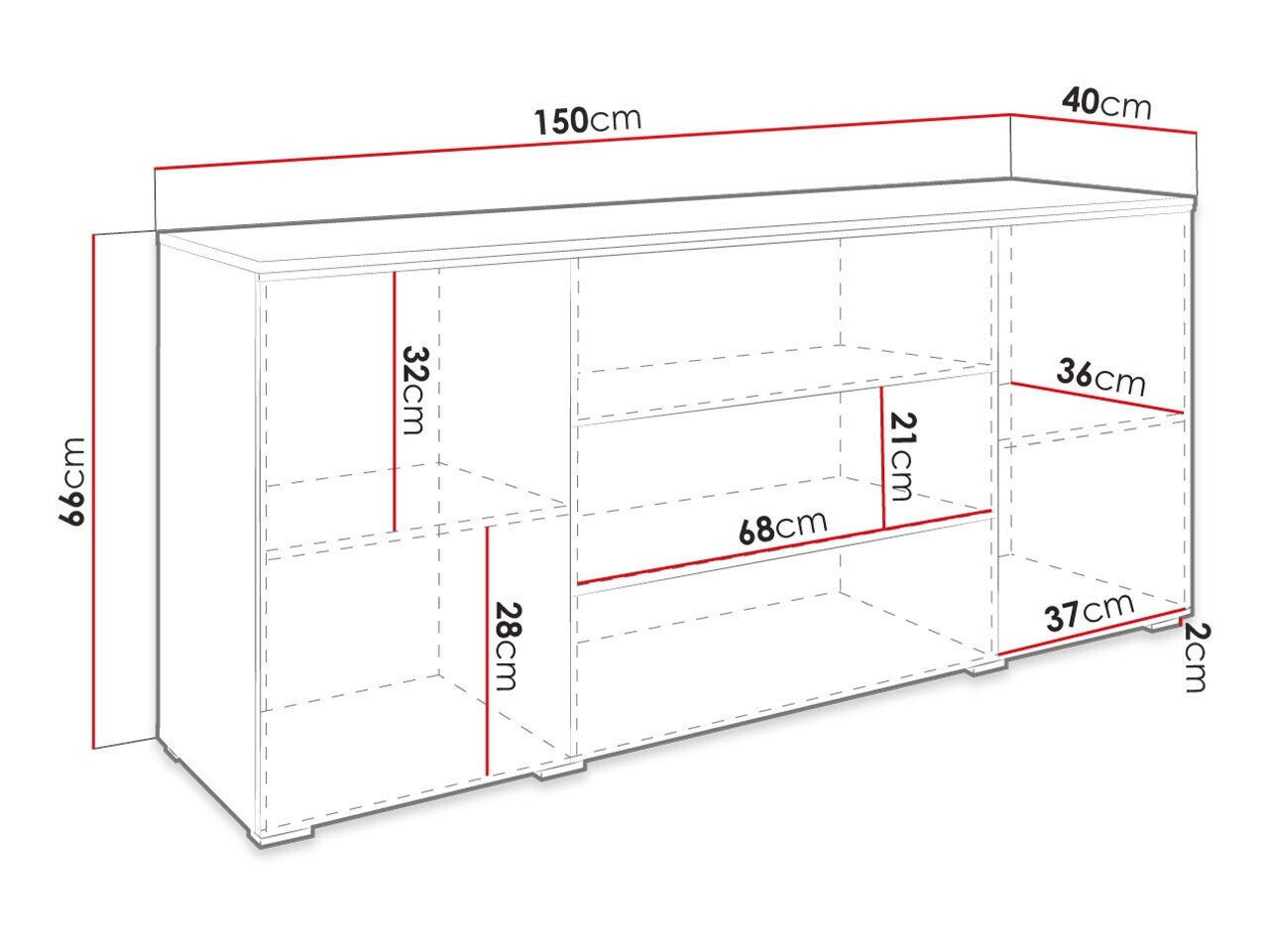 Komód VERA 150 (Sawoti), Szín: Matera szürke + Fényes fehér, Led világítás: Igen RGB