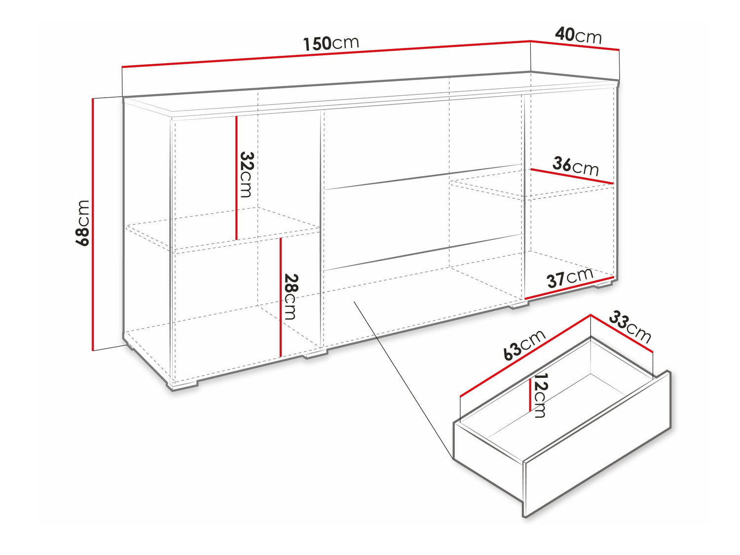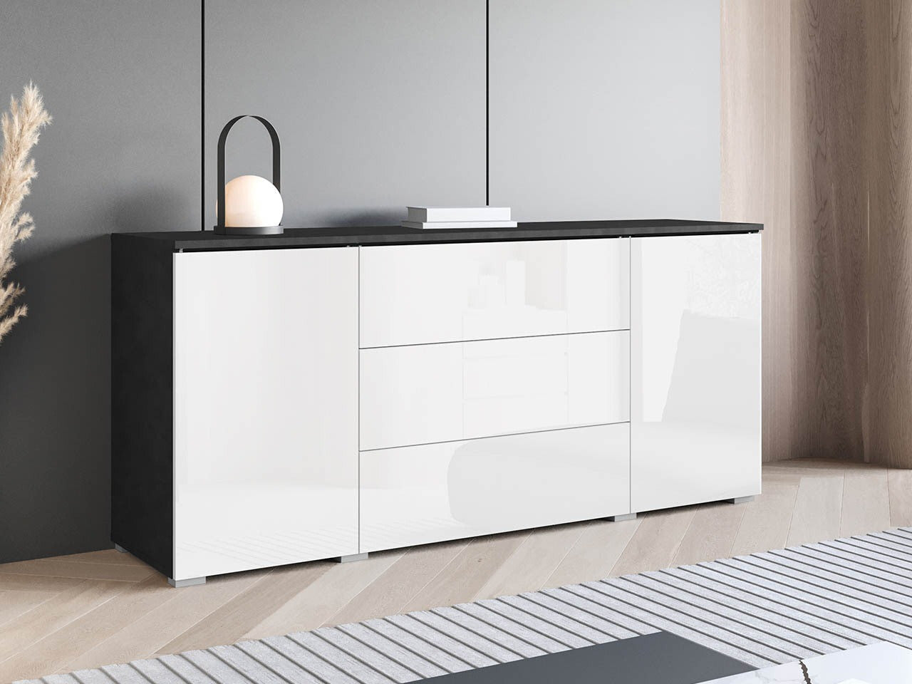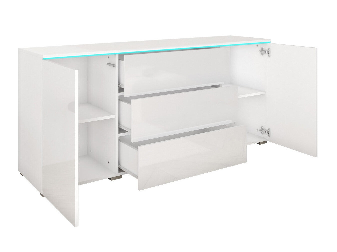 Komód VERA 150 (Sawoti), Szín: Matera szürke + Fényes fehér, Led világítás: Nem