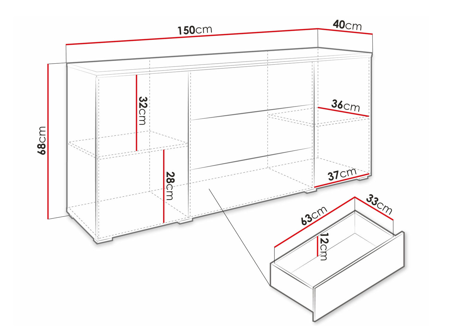 Komód VERA 150, Szín: Wotan tölgy + Fényes fehér, Led világítás: Nem