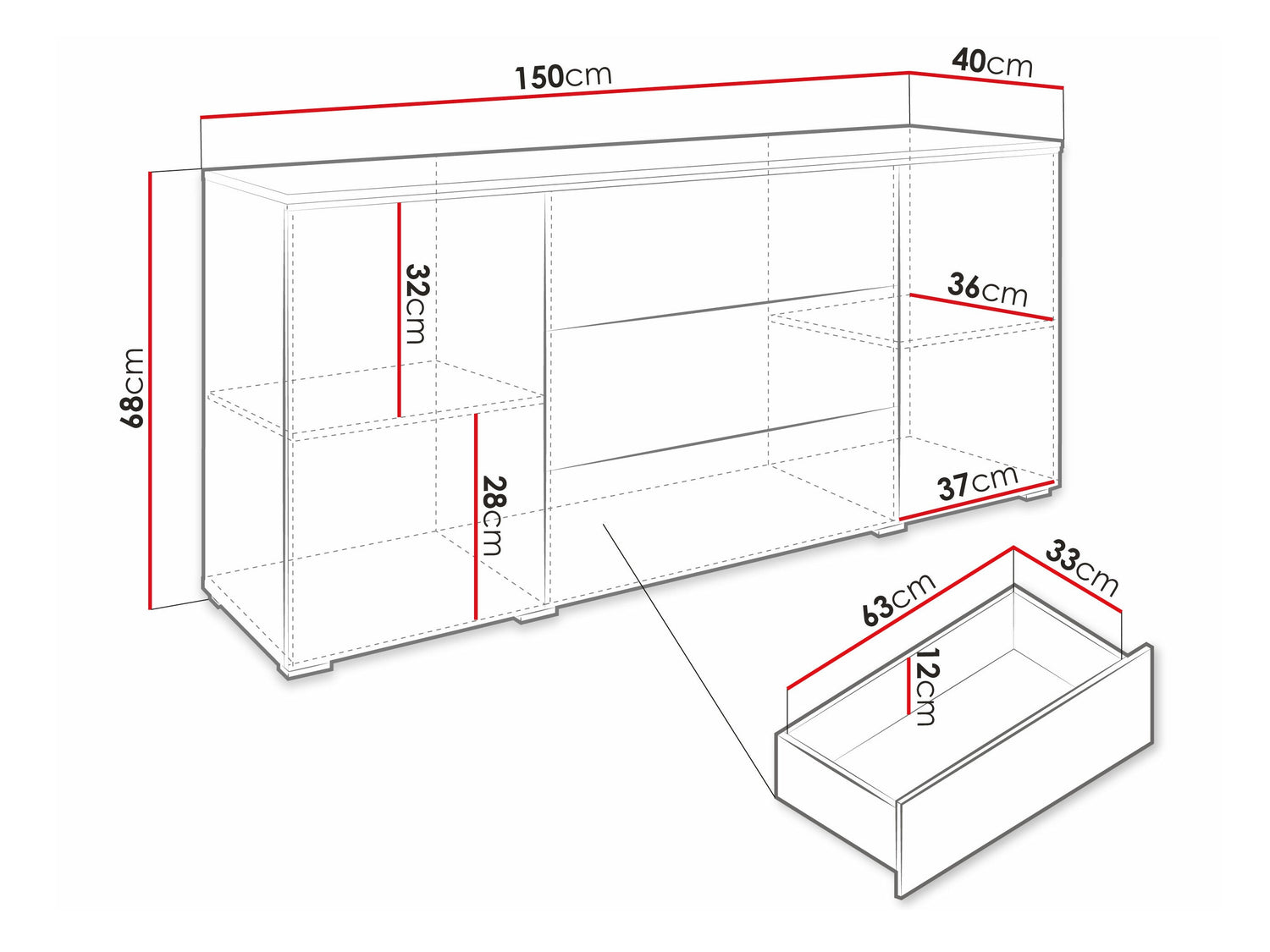 Komód VERA 150, Szín: Wotan tölgy + Fényes fekete, Led világítás: Nem
