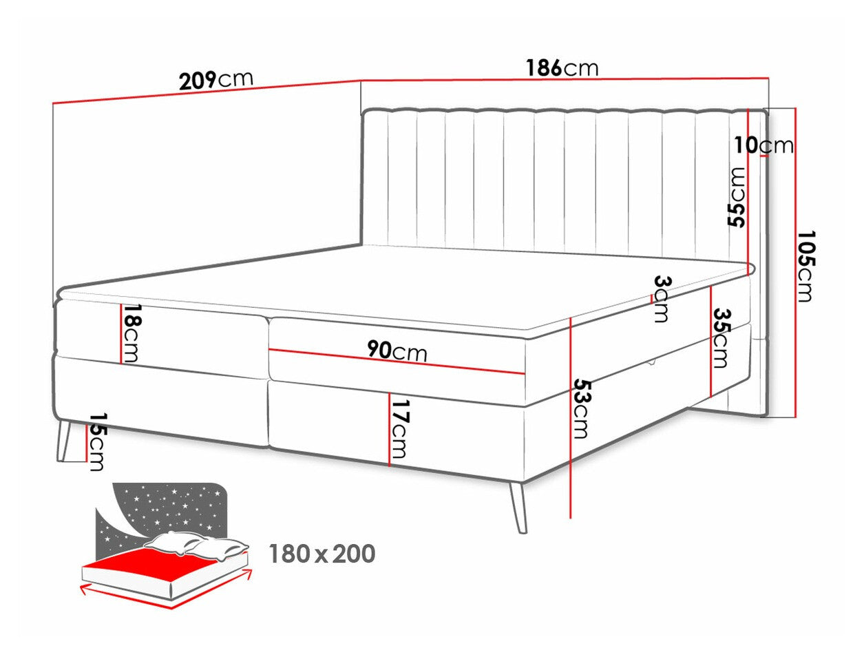 Kontinentális ágy Cindy (Tosseri), Szín: Poso 22 + Kronos 22, Alvó felület mérete: 180 x 200 cm
