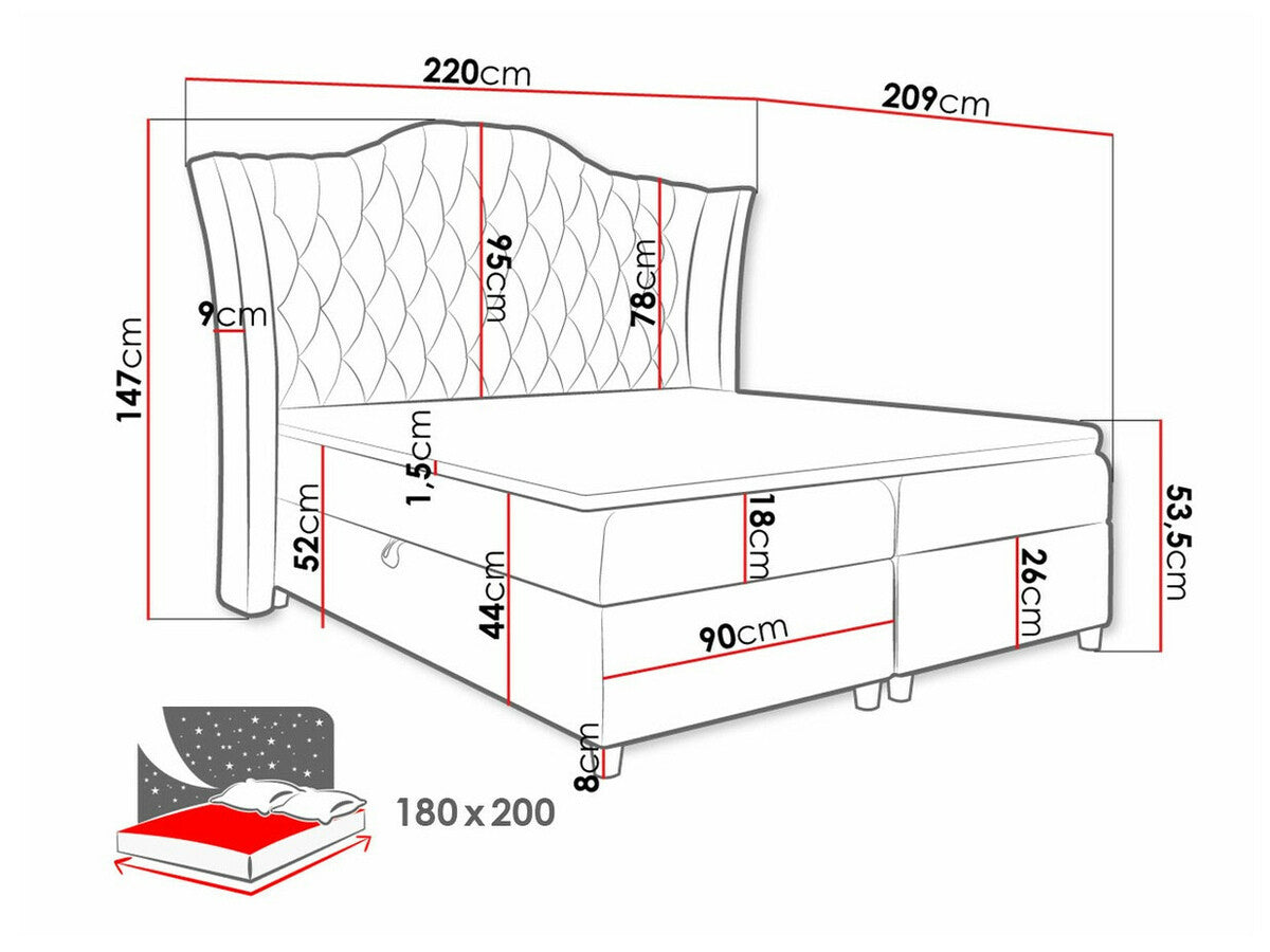 Kontinentális ágy COLOMBO (Lenturio), Szín: Fresh 33, Alvó felület mérete: 180 x 200 cm