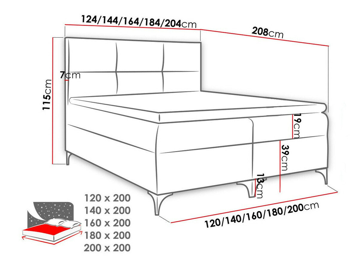 Ágyneműtartó méretei25 x 197 x 67 cm