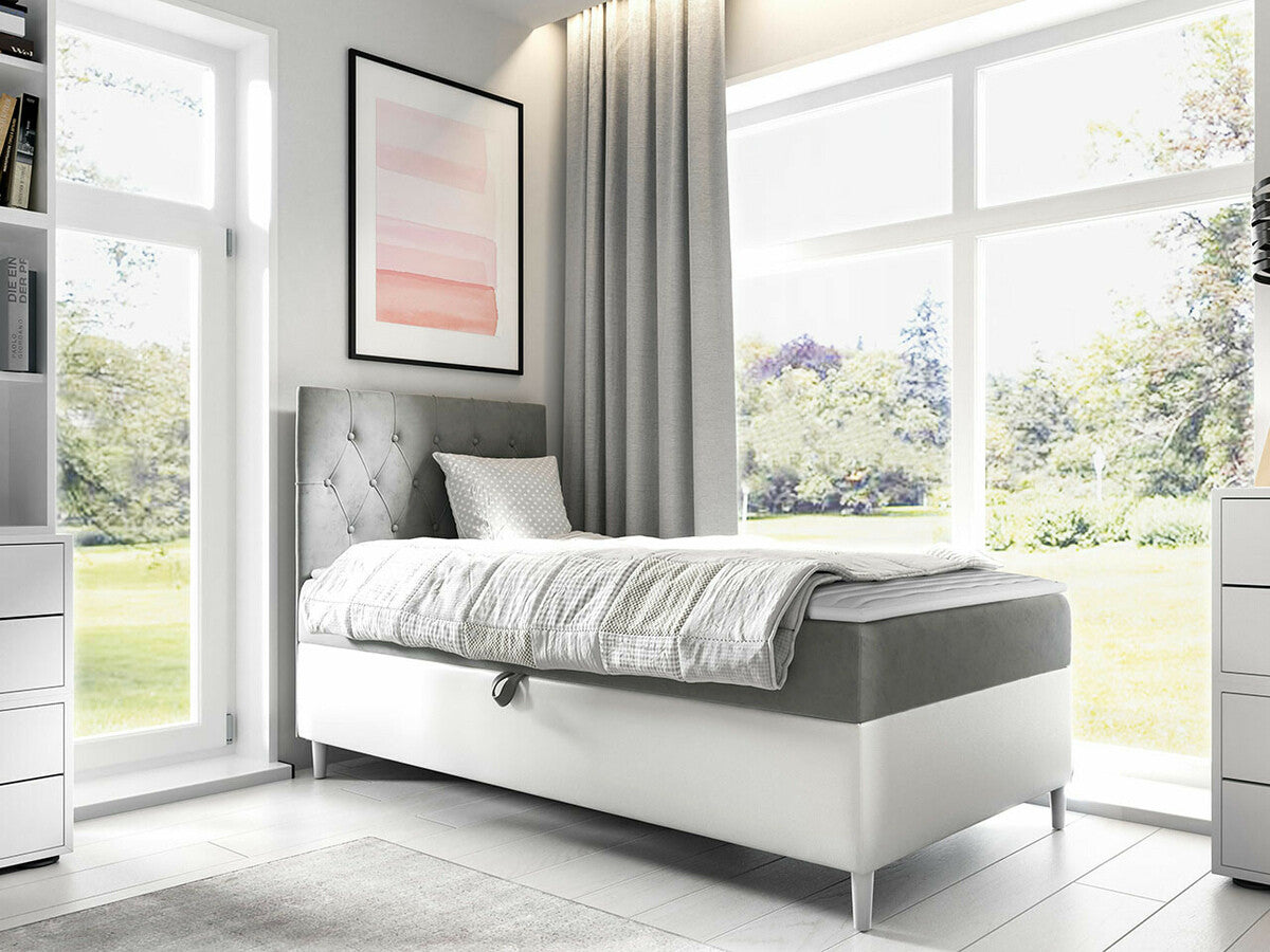 Kontinentális ágy JUNIOR FILIP 1, Szín: Öko bőr Soft 017 + Fresh 14, Ágyneműtartó: Bal oldalon, Alvó felület mérete: 100 x 200 cm