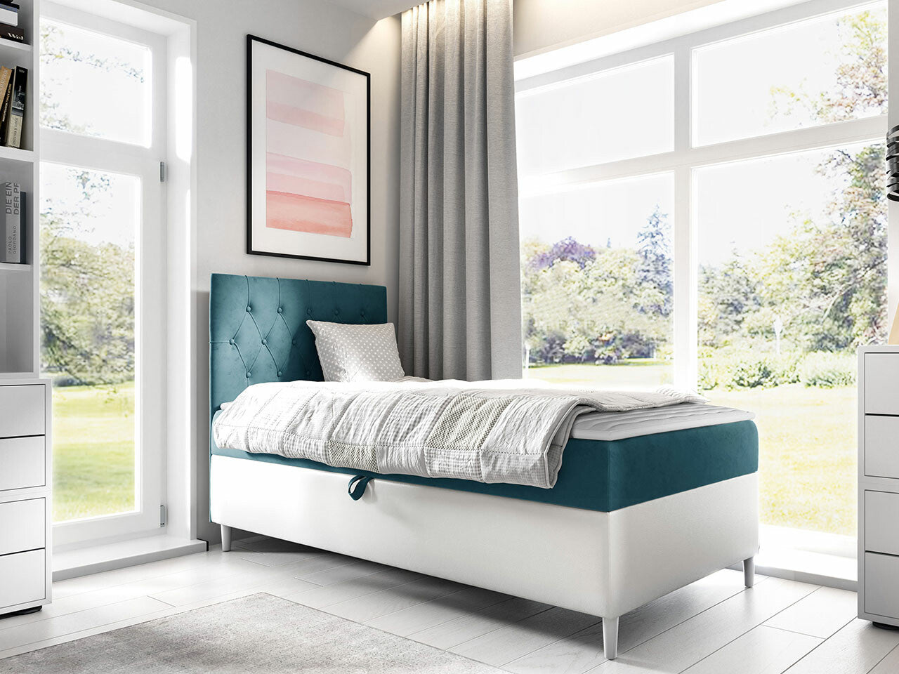 Kontinentális ágy JUNIOR FILIP 1, Szín: Öko bőr Soft 017 + Fresh 34, Ágyneműtartó: Bal oldalon, Alvó felület mérete: 80 x 200 cm