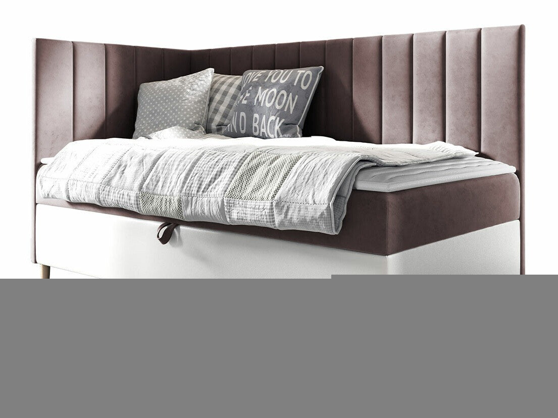 Kontinentális ágy JUNIOR MAJA 3, Szín: Öko bőr Soft 017 + Fresh 9, Ágyneműtartó: Bal oldalon, Alvó felület mérete: 100 x 200 cm