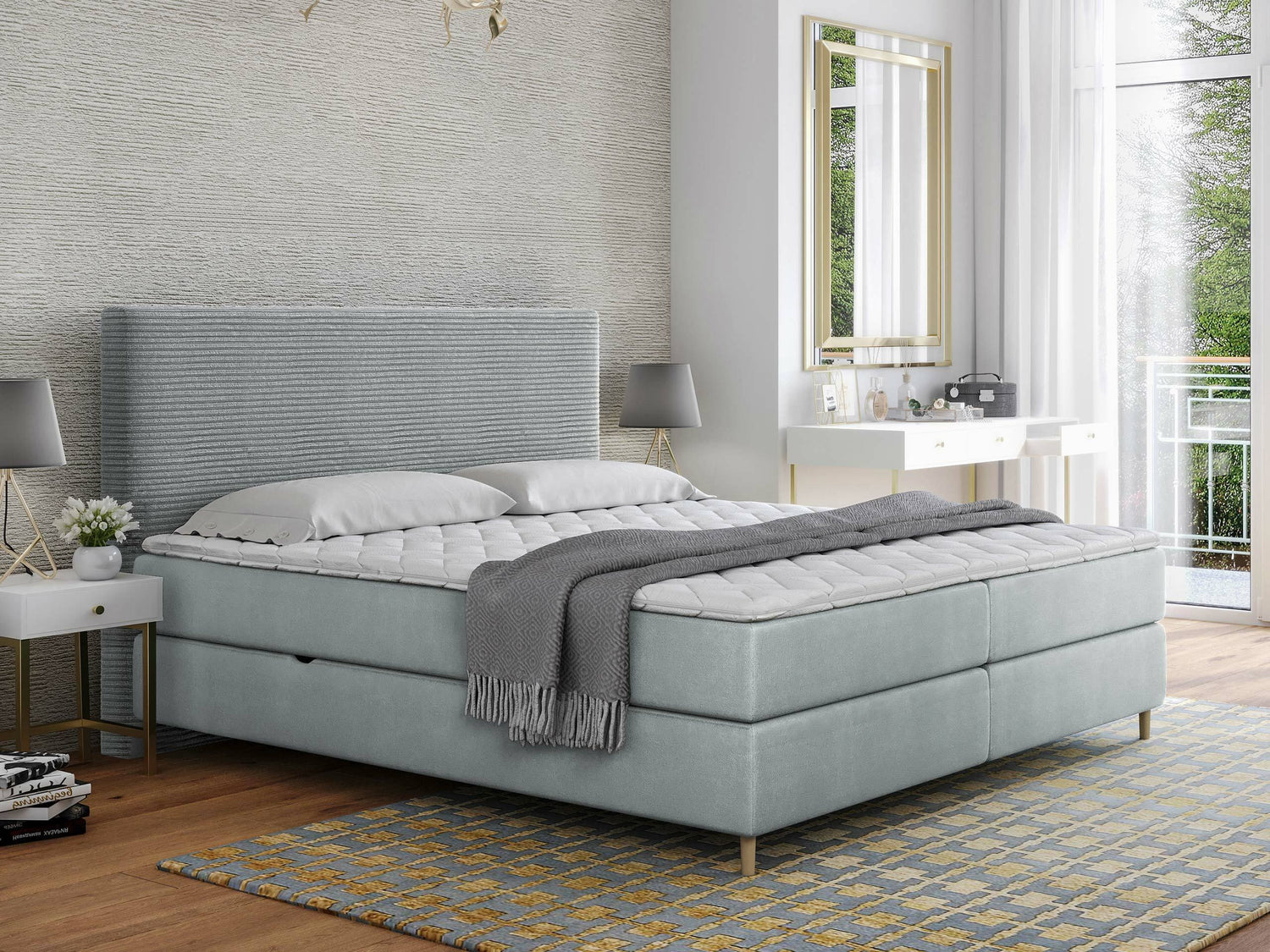 Kontinentális ágy Laro, Szín: Poso 55 + Paros 05, Alvó felület mérete: 180 x 200 cm