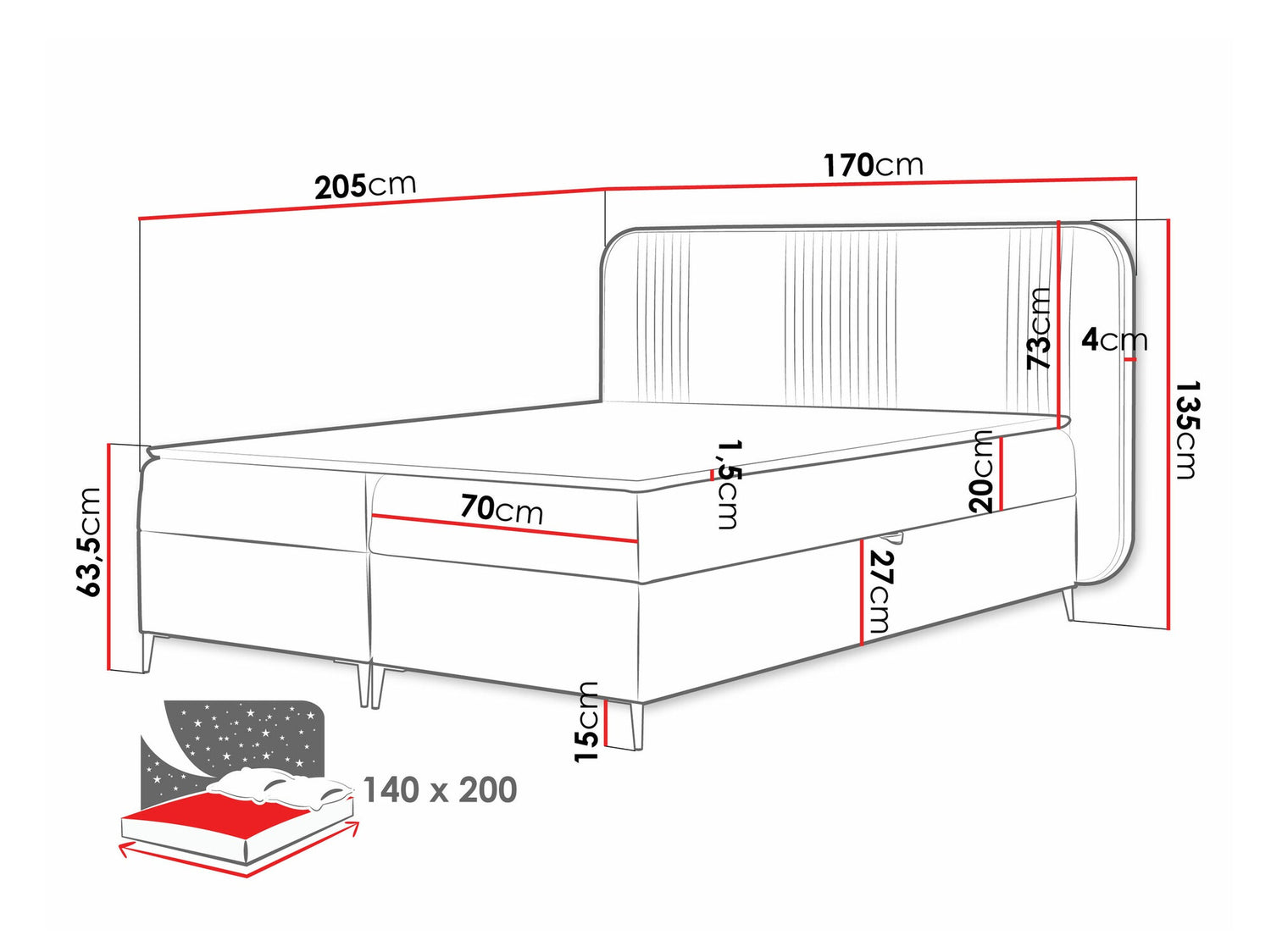 Kontinentális ágy Łoże kontynentalne FANDY 120x200 + topper M, Szín: Magic Velvet 2206, Alvó felület mérete: 140 x 200 cm