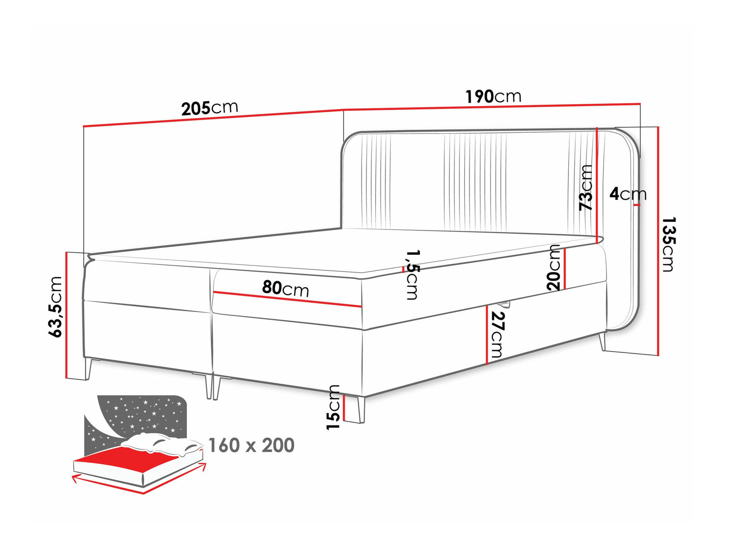Kontinentális ágy Łoże kontynentalne FANDY 120x200 + topper M, Szín: Magic Velvet 2217, Alvó felület mérete: 160 x 200 cm