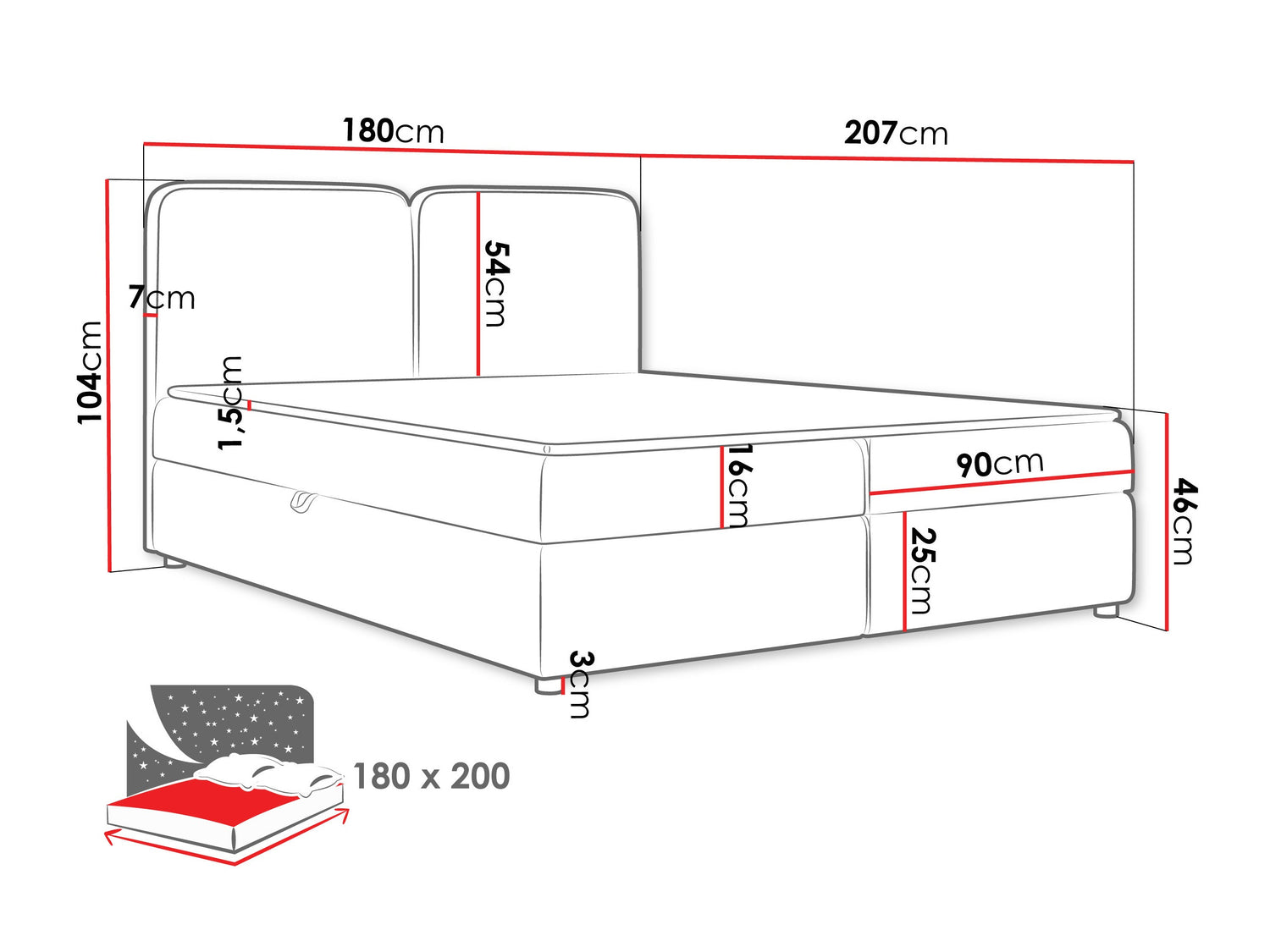 Fejforma méretei104 x 180 x 7 cm
