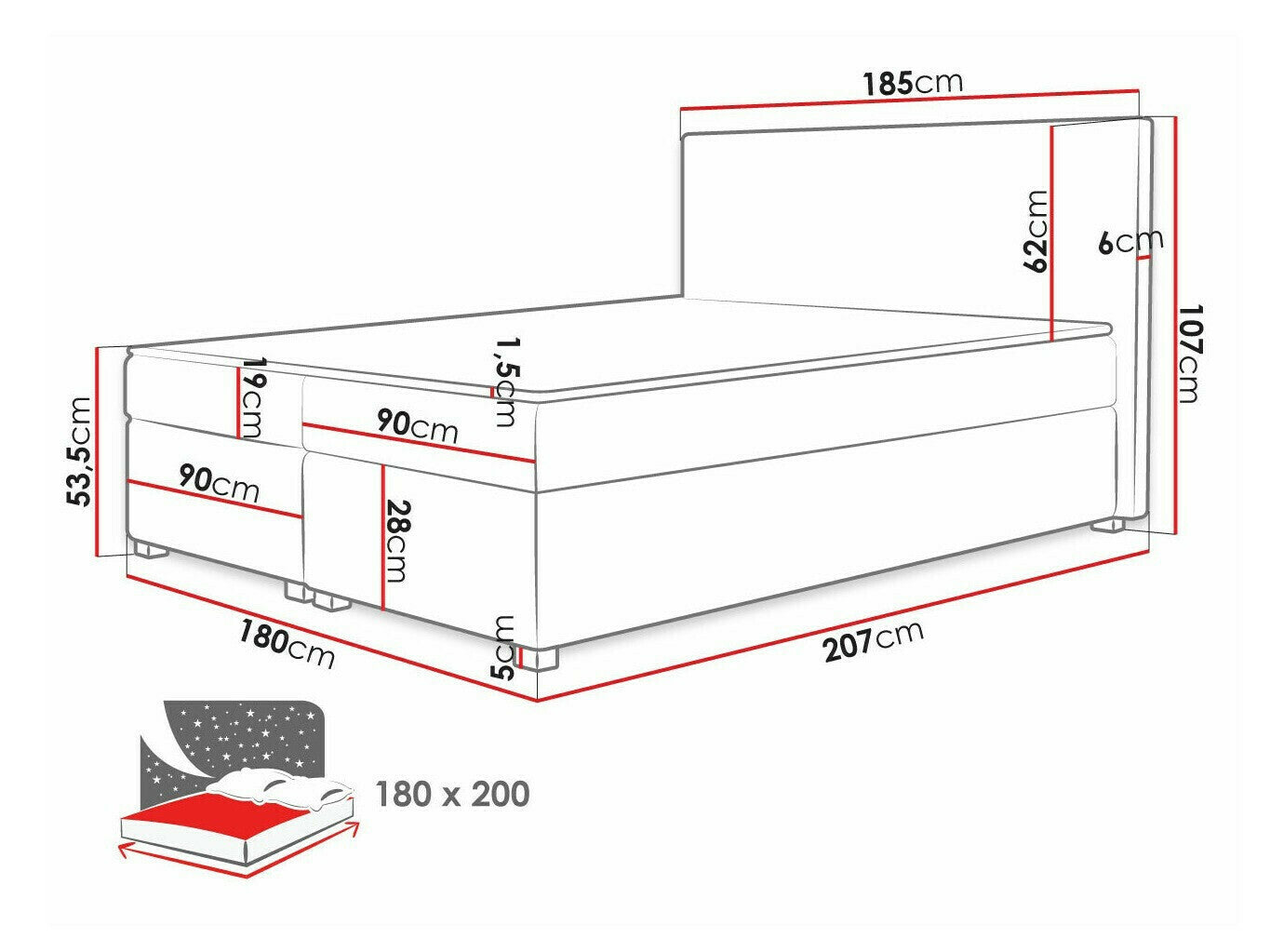 Kontinentális ágy Łóżko kontynentalne SIMPLE, Szín: Poso 14, Alvó felület mérete: 180 x 200 cm